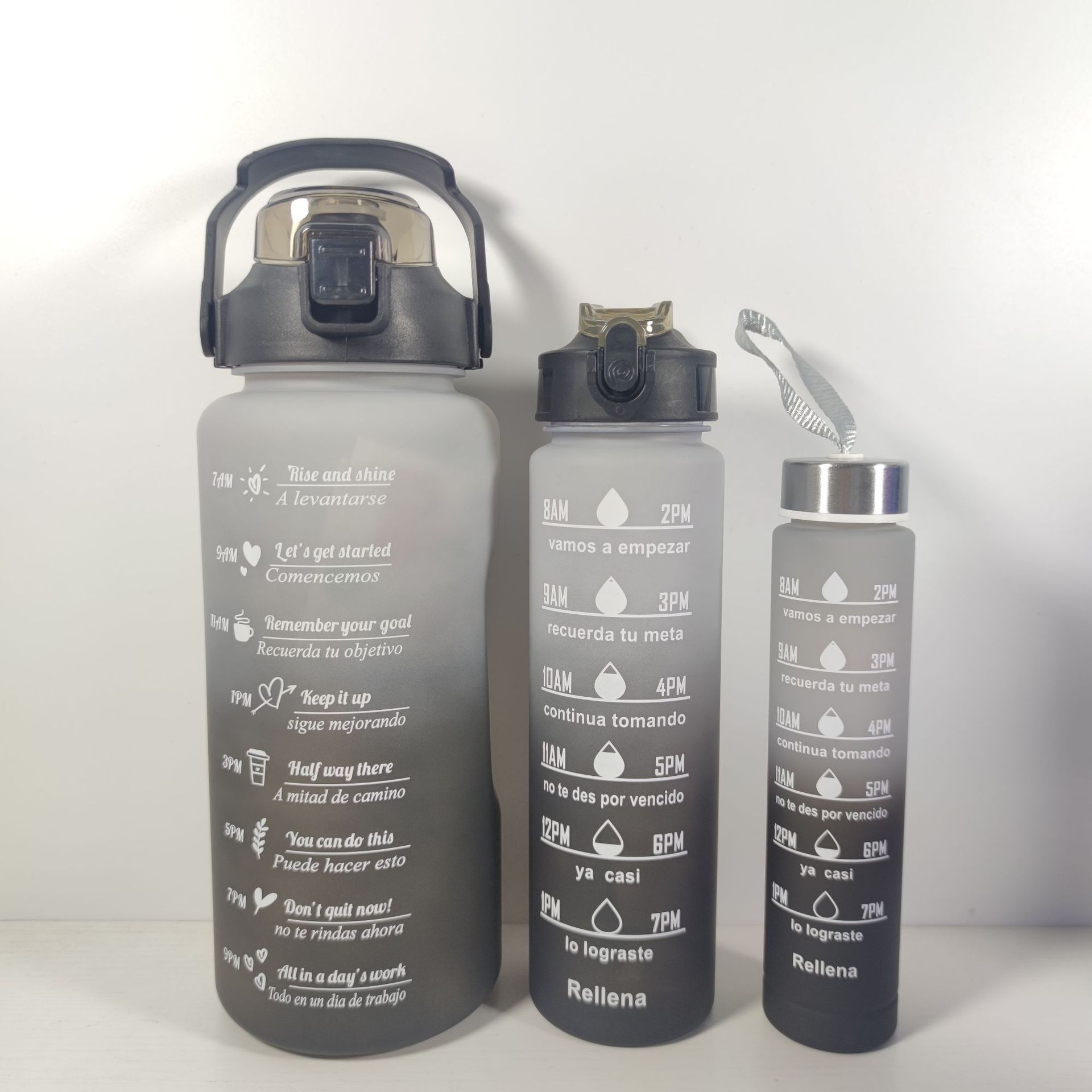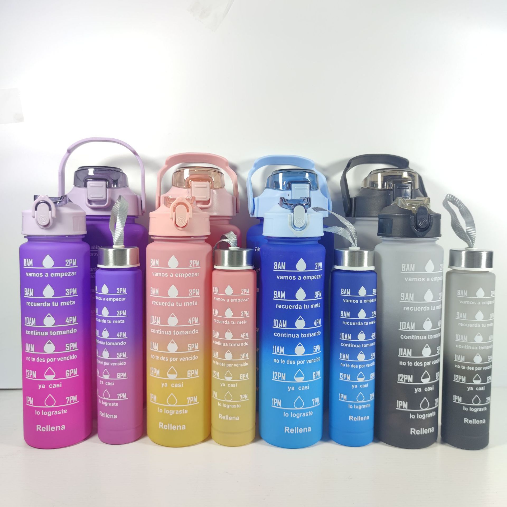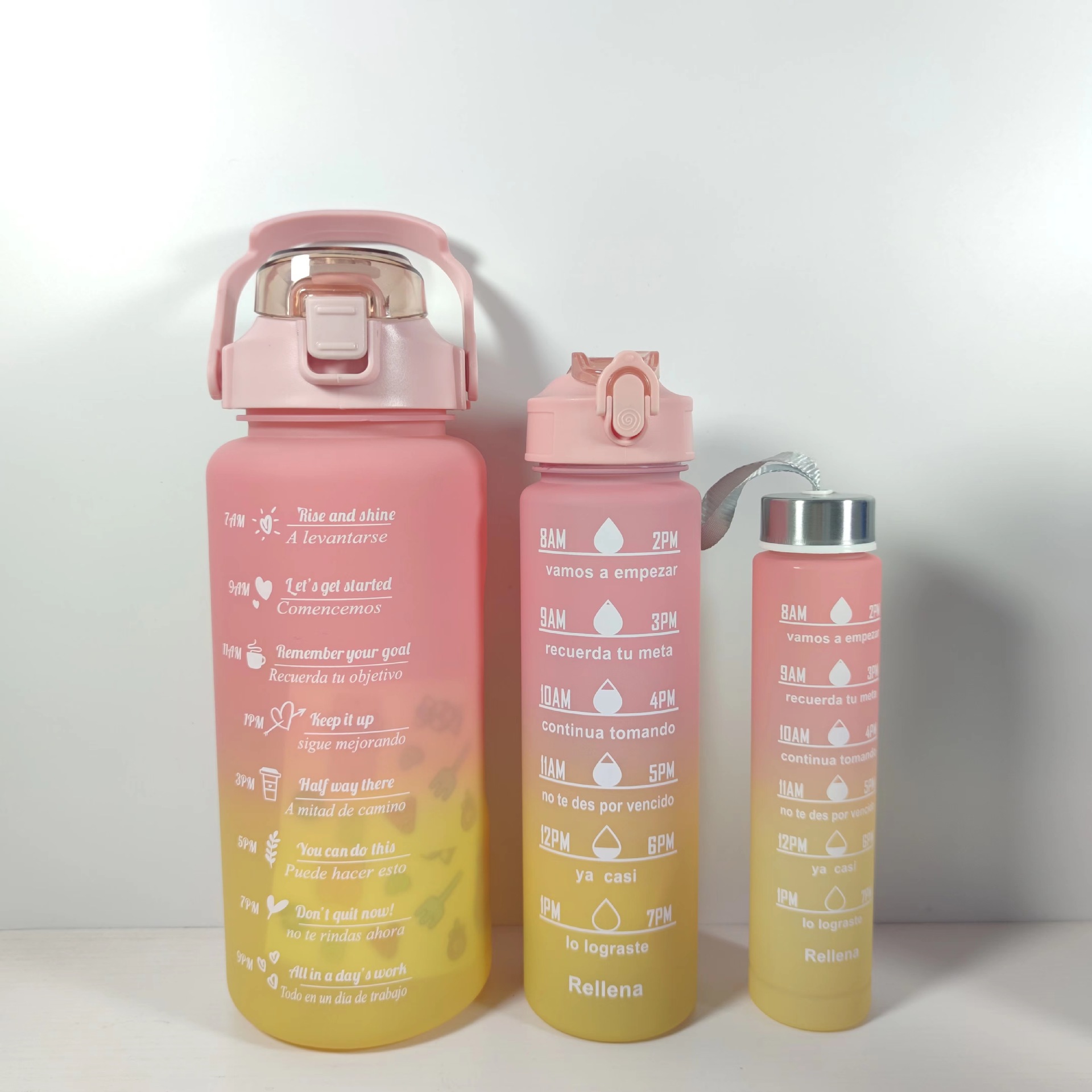 现货大水杯大容量塑料运动水杯三件套跨境新品渐变色磨纱套杯厂家