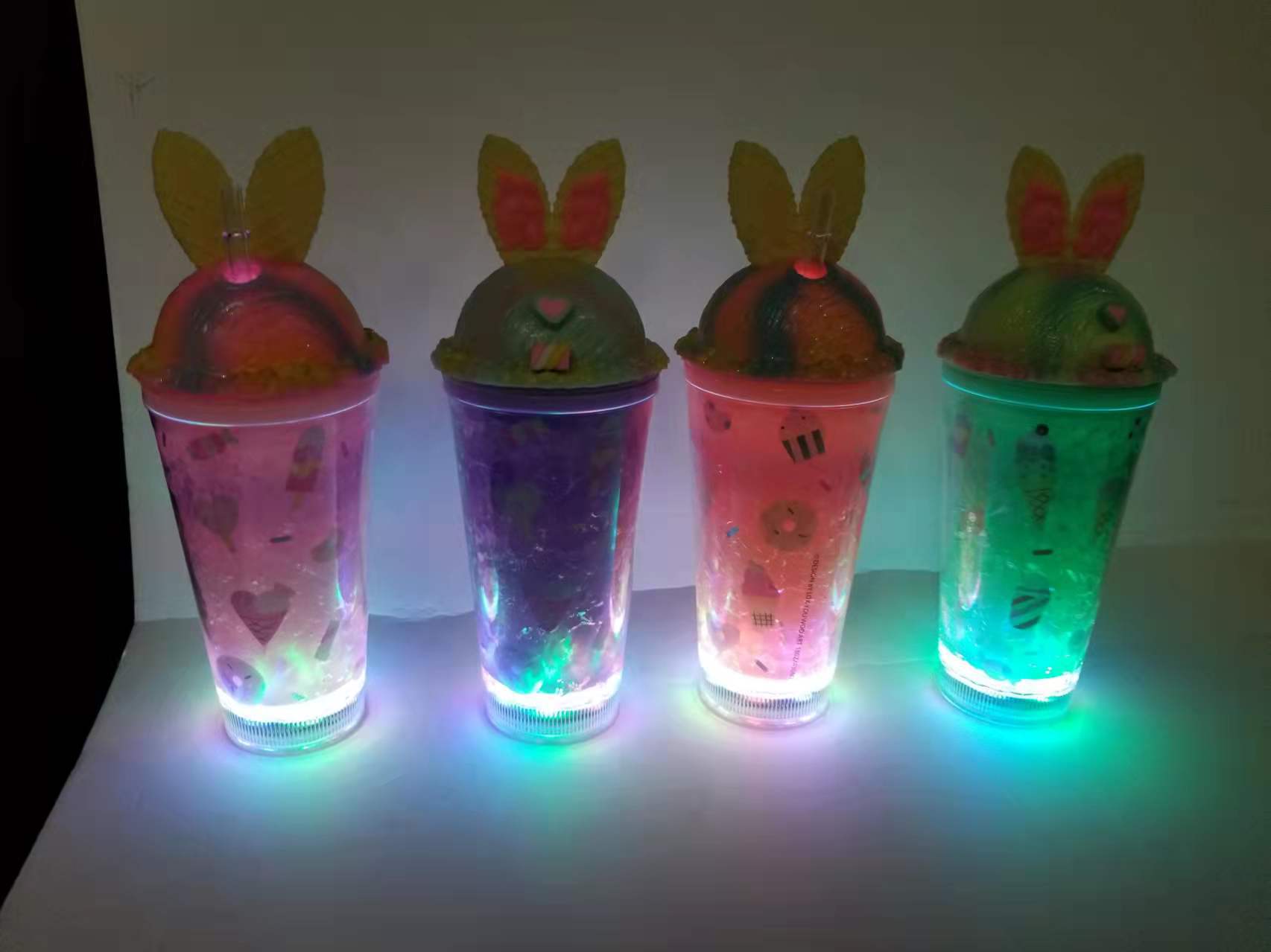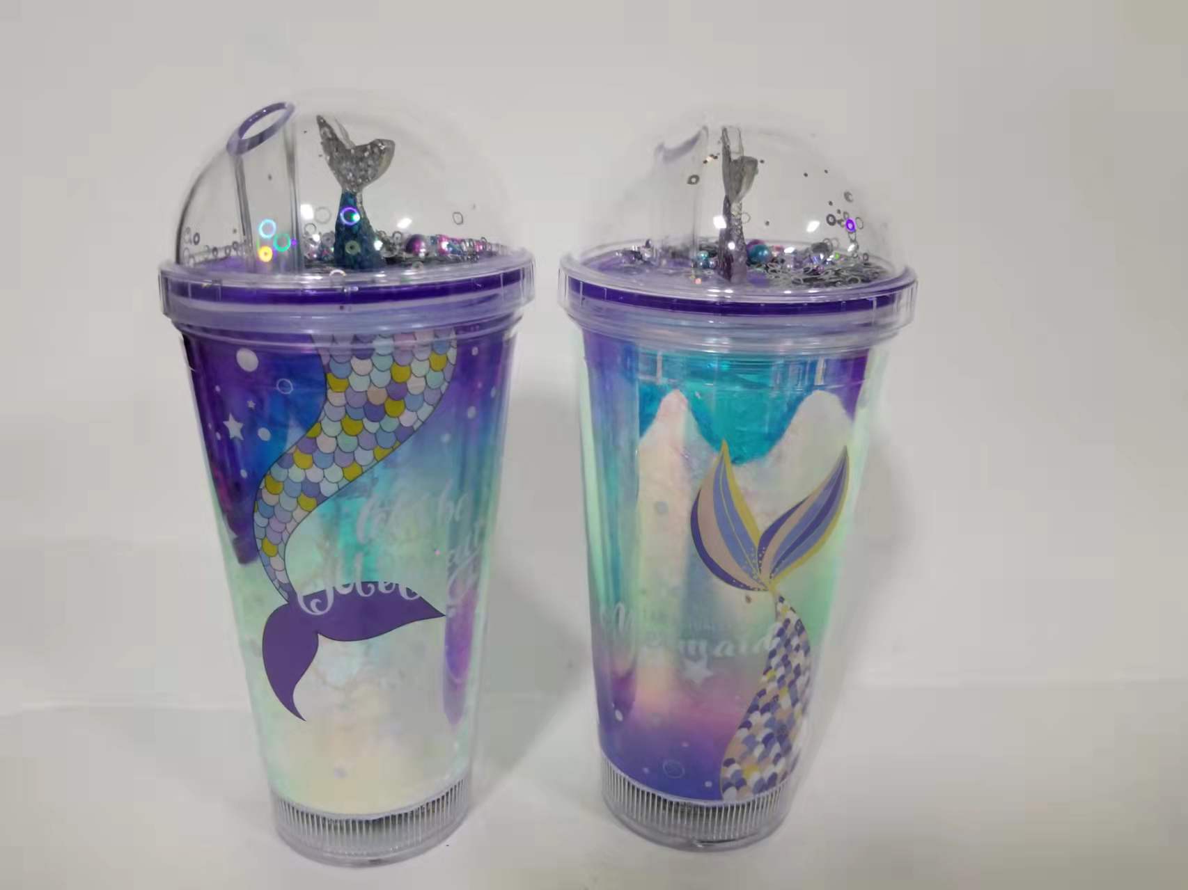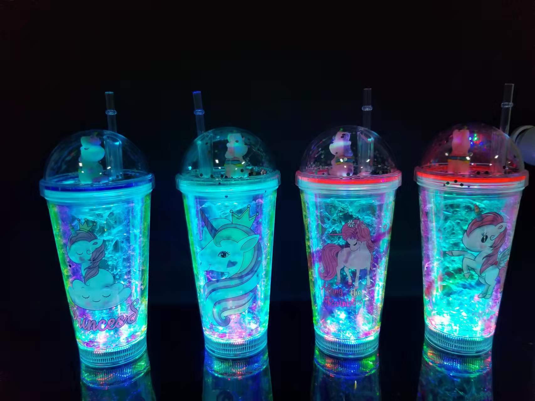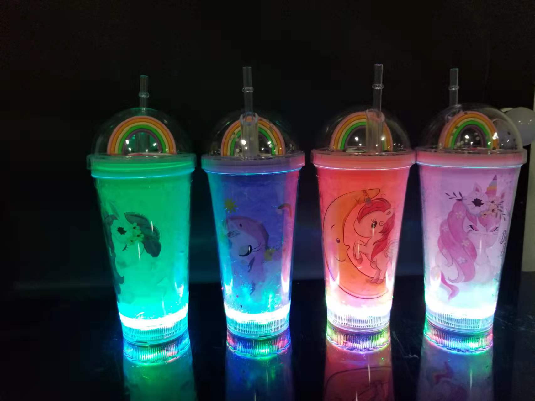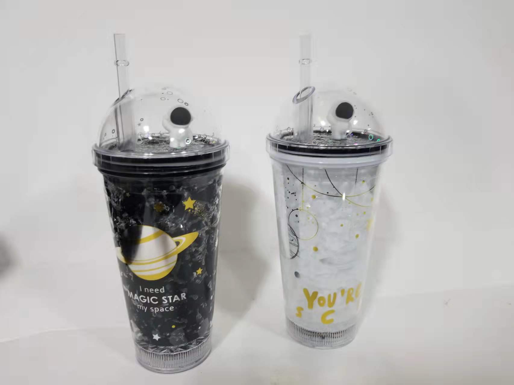 恐龙玩偶亮片创意双层塑料杯16oz冰杯厂家广告礼品吸管杯