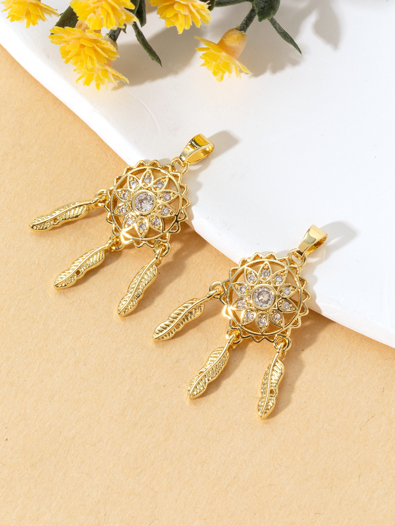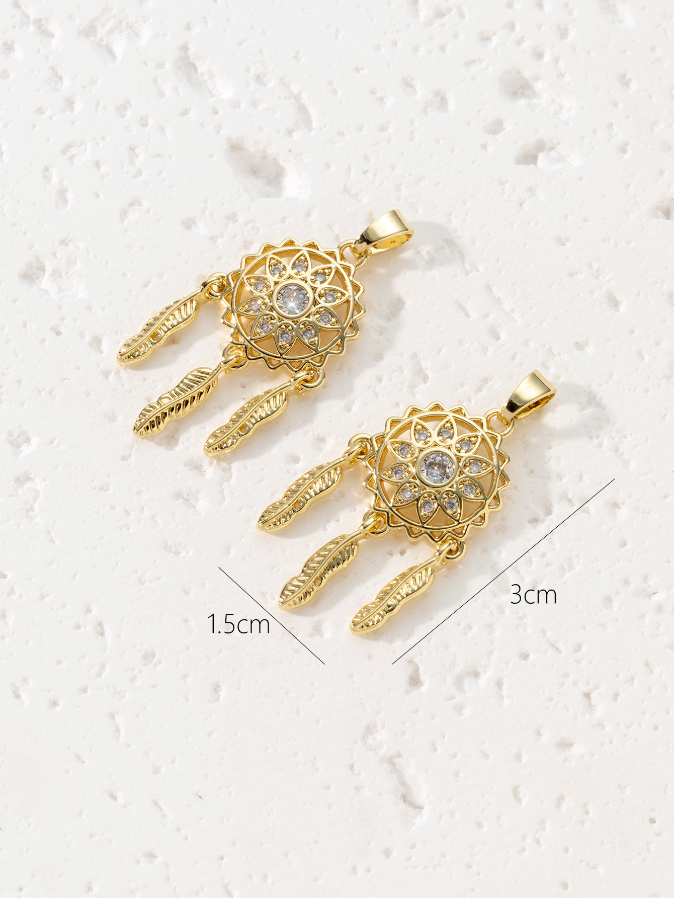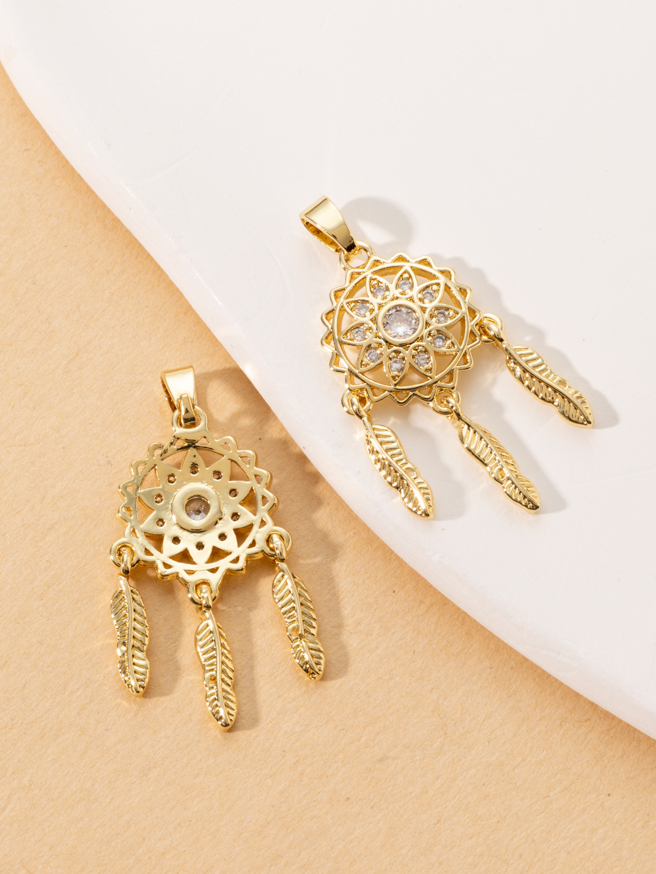 DIY手工时尚饰品配件流苏捕梦网项链吊坠欧美货源铜锆石微镶镀金