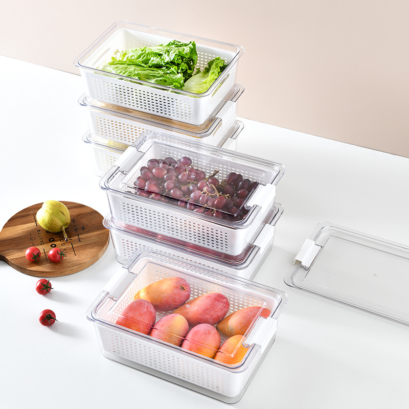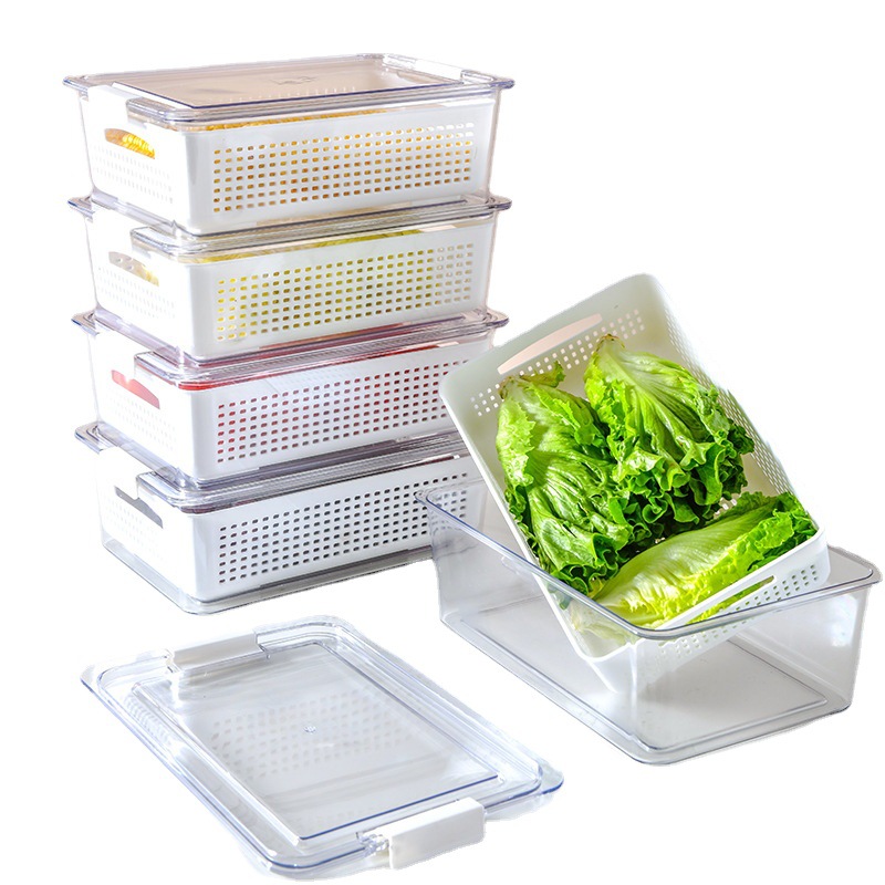 带沥水篮冰箱保鲜盒 大容量厨房果蔬收纳盒 冷冻食品级透明储物盒