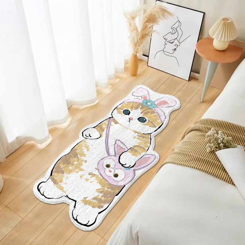红日地毯 卡通床边地毯卧室猫咪仿羊绒地垫地毯满铺居家沙发毯