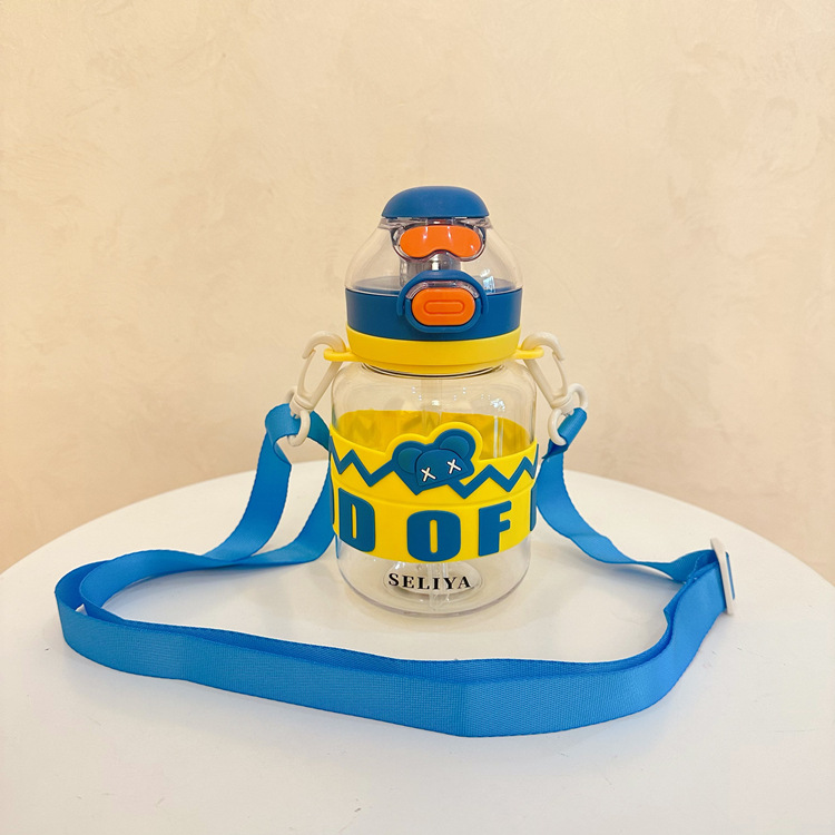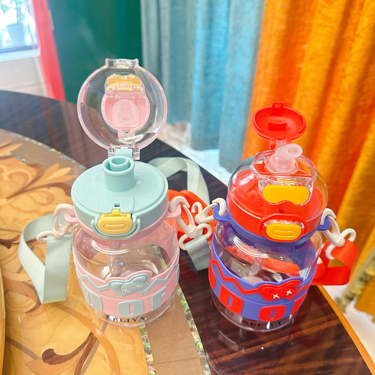 高颜值新款儿童杯god of luck吸管小口直饮背带弹跳盖可爱小矮胖