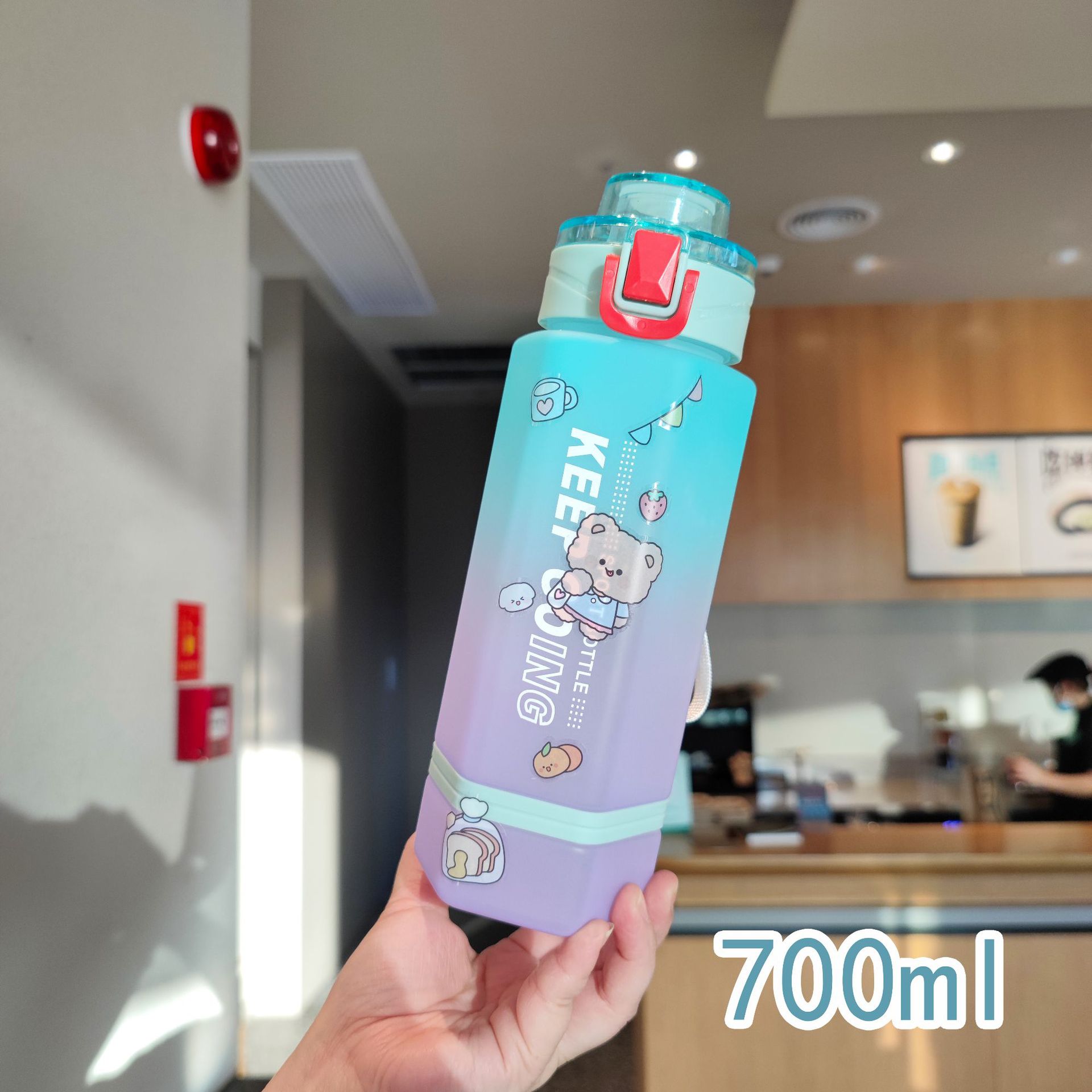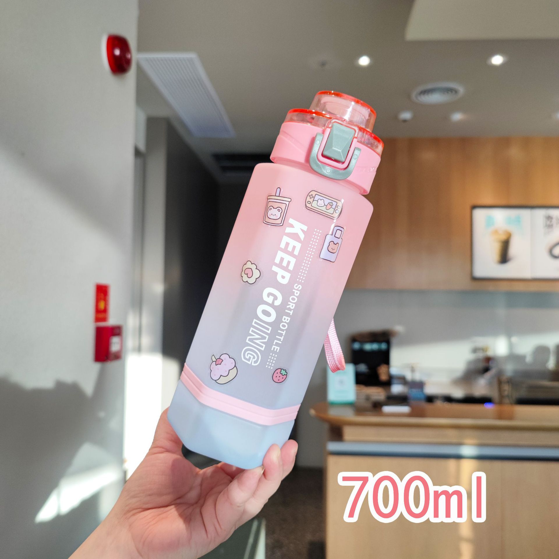 渐变色弹扣运动水壶带吸管水杯可贴纸DIY高颜值健身户外水杯
