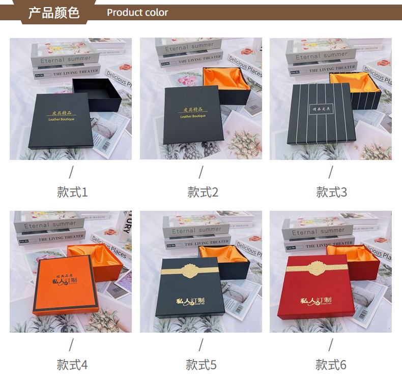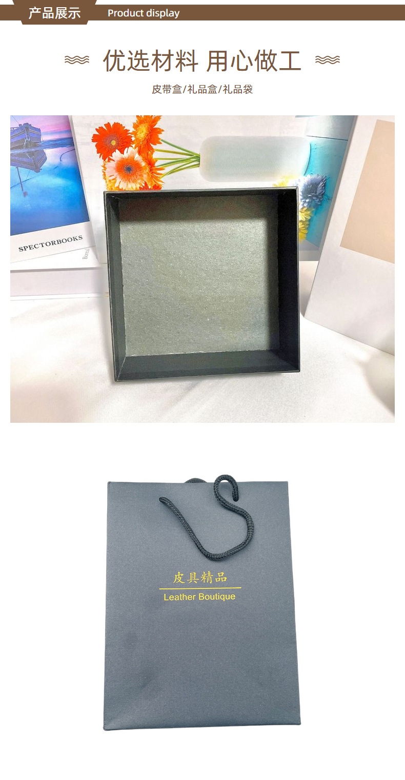 正方形天地盖包装纸盒子 礼品皮具皮带盒 带绸布烫金腰带套装礼盒