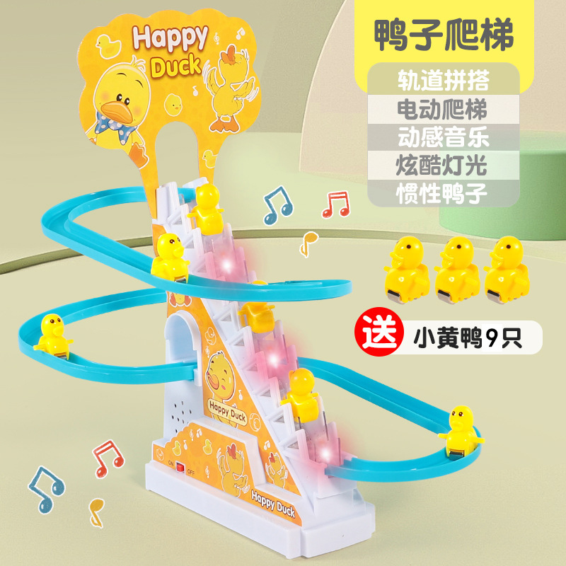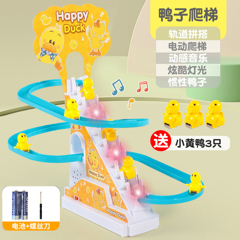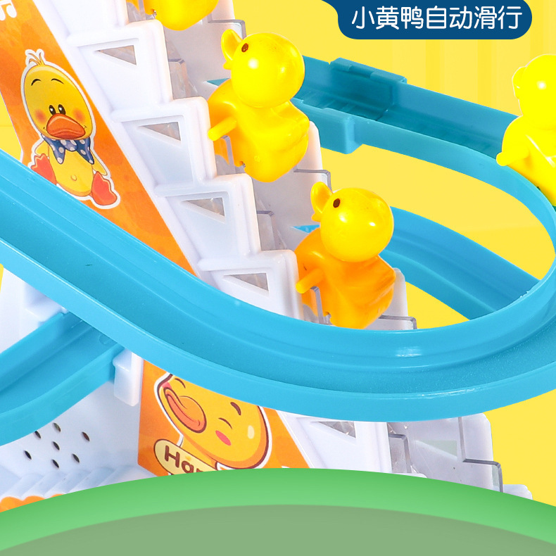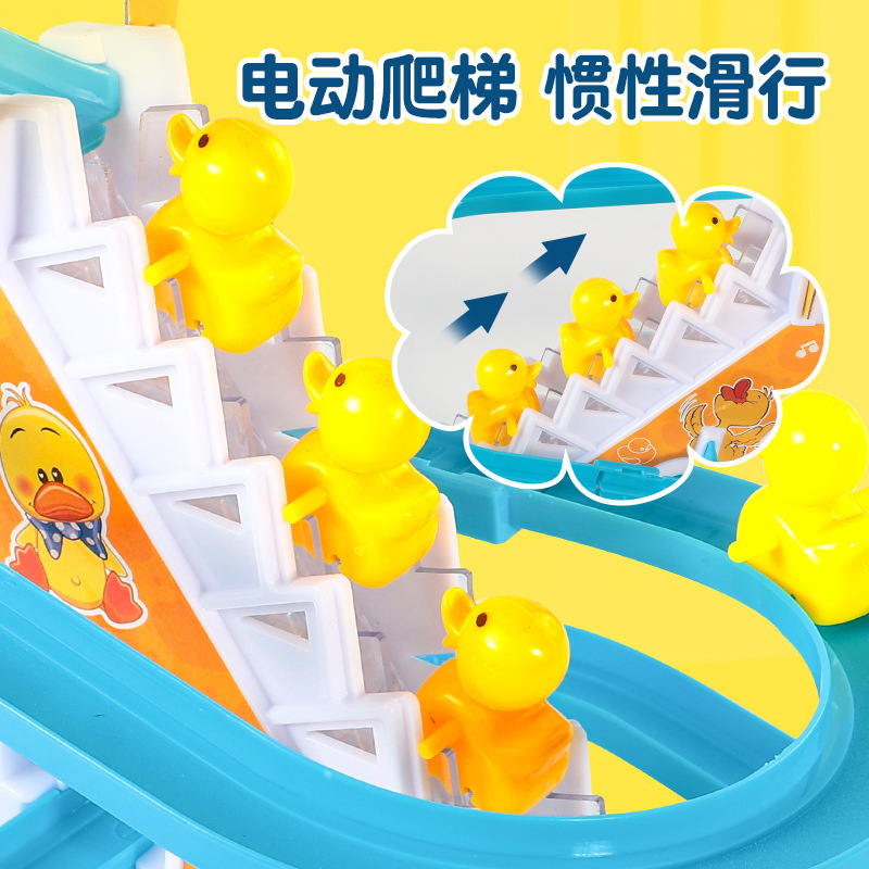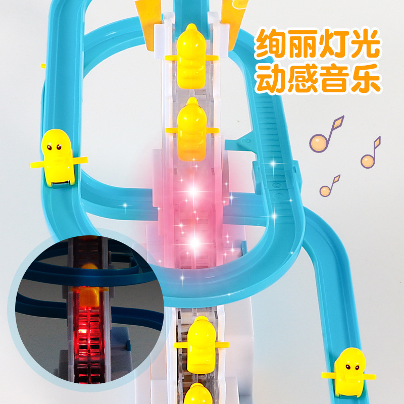 抖音小鸭子爬楼梯电动声光滑滑梯自动爬梯多层轨道车批发儿童玩具