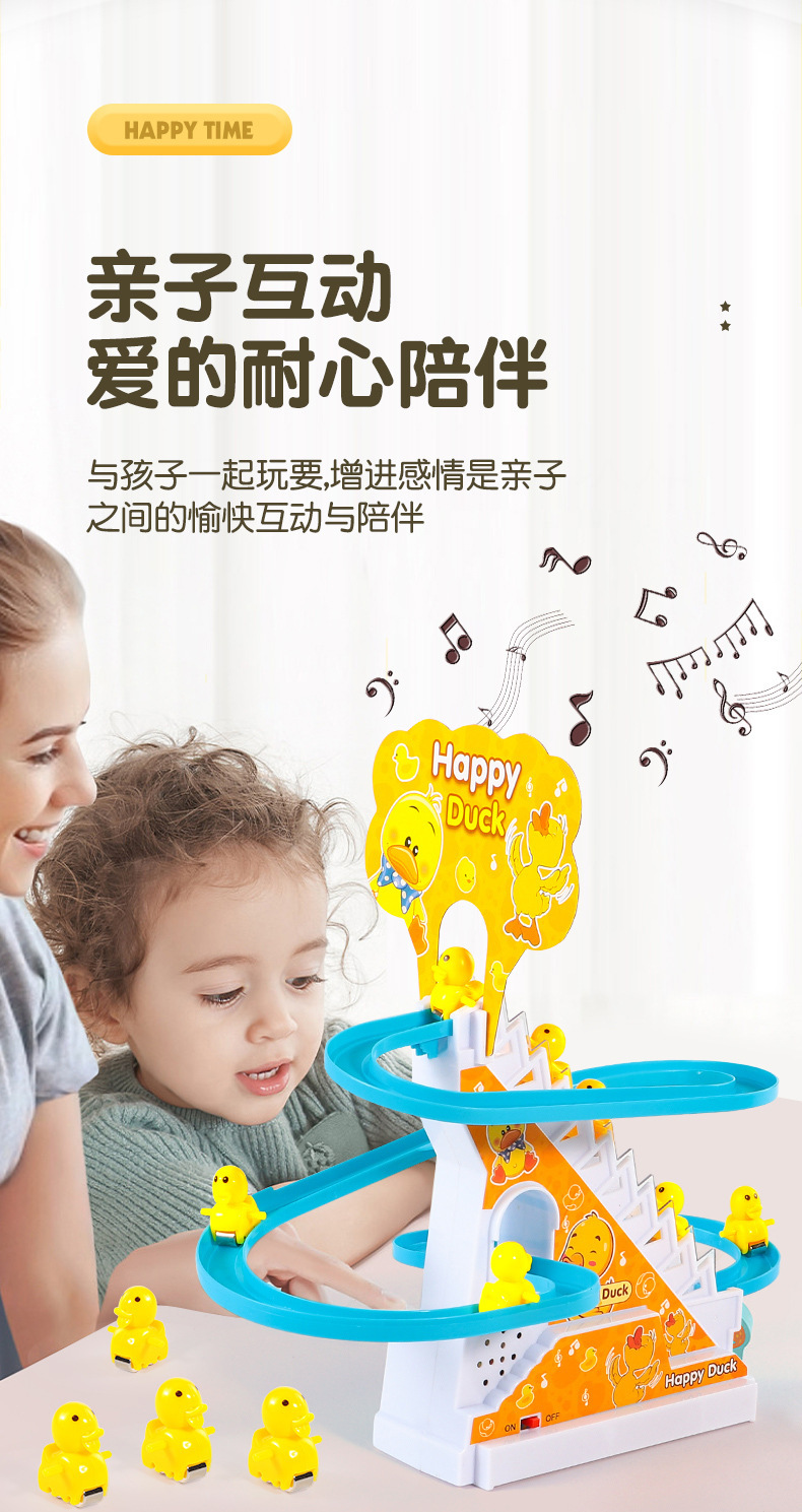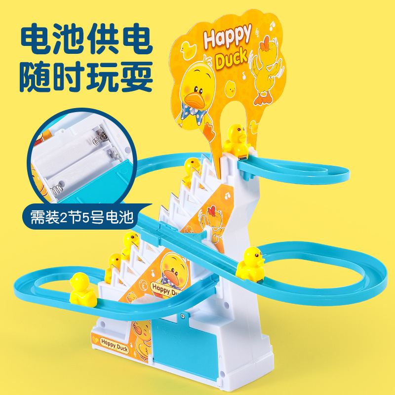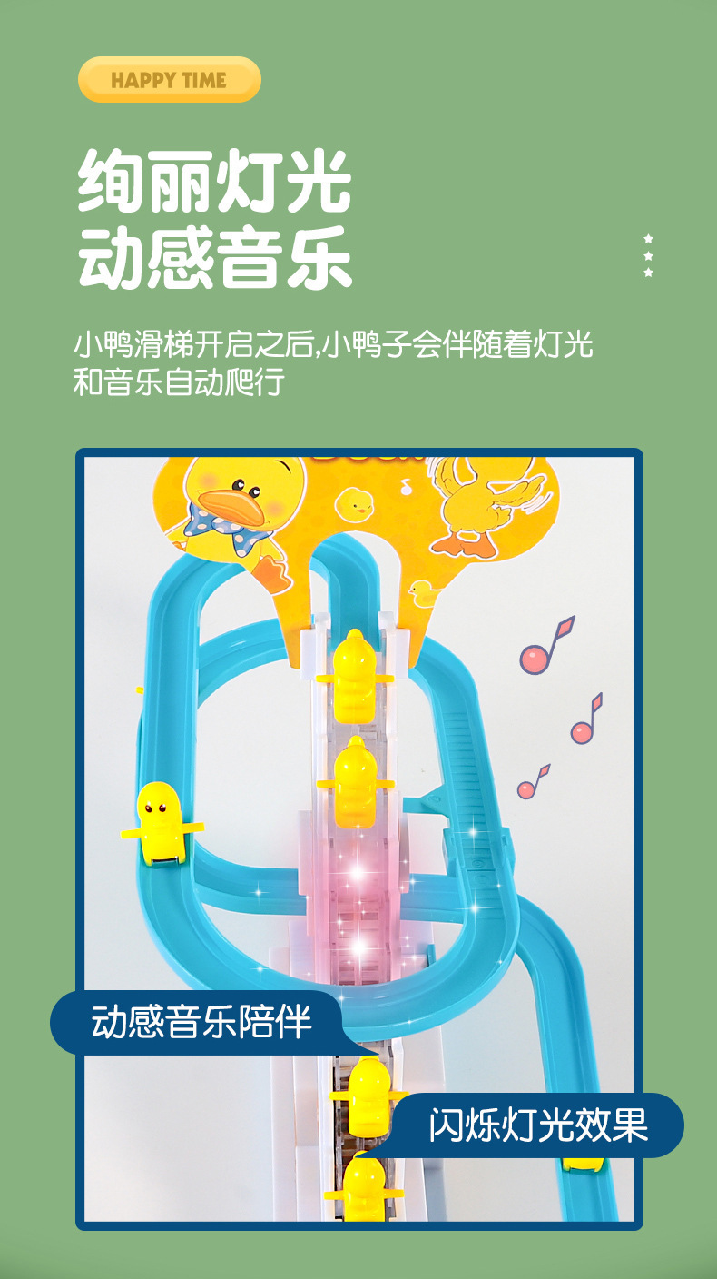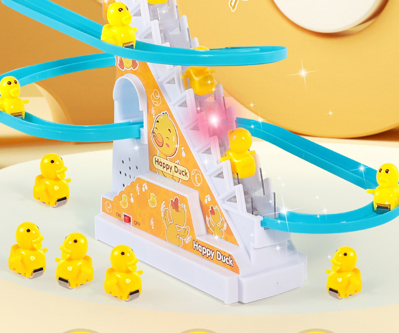 抖音小鸭子爬楼梯电动声光滑滑梯自动爬梯多层轨道车批发儿童玩具