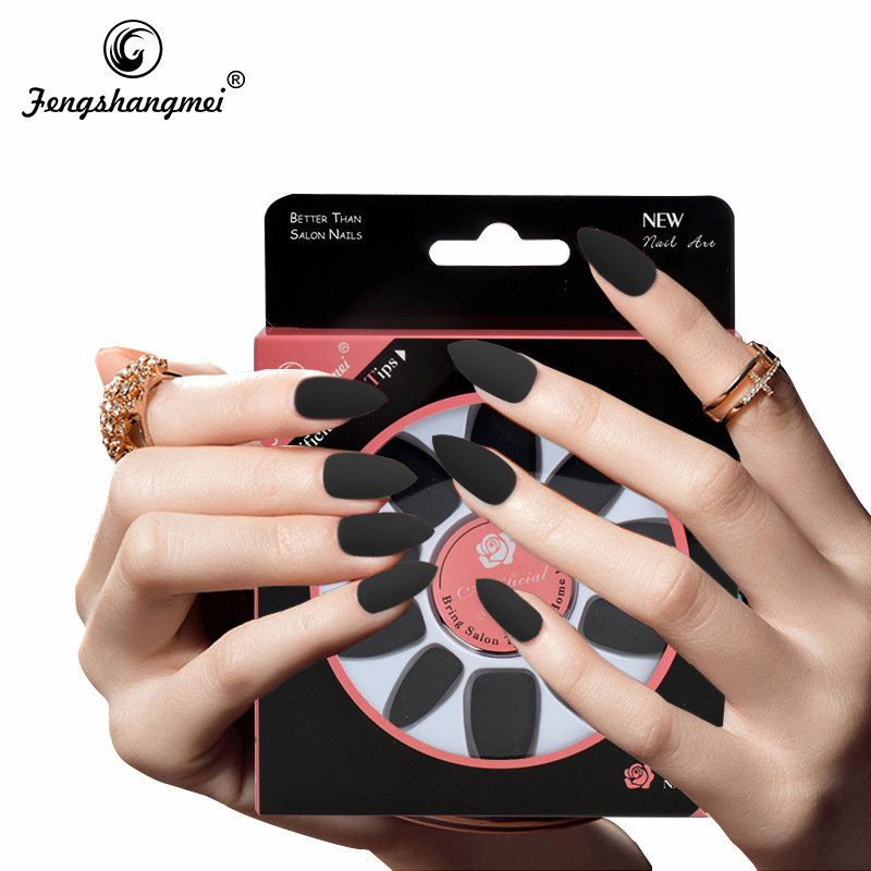 杏仁甲欧美纯色哑光雾面丝滑尖头穿戴甲片指甲贴片假指甲磨砂甲片