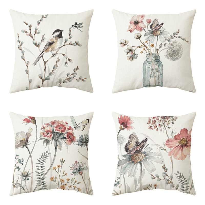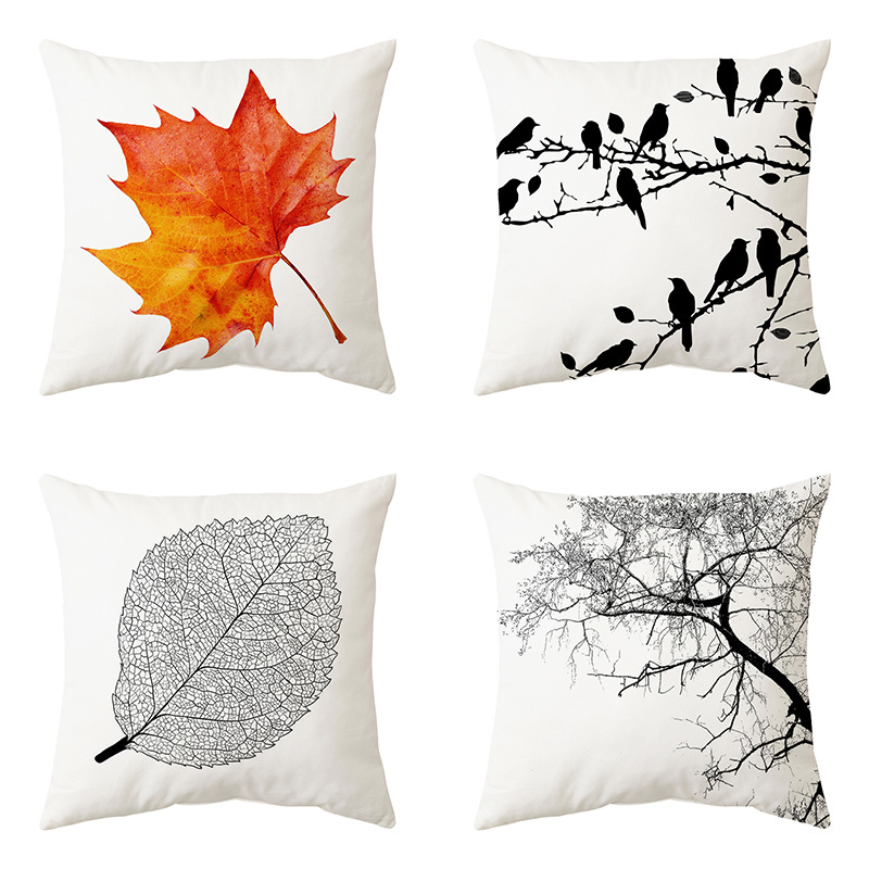 跨境北欧简约树叶花卉抱枕装饰抱枕靠垫套礼品靠枕坐垫抱枕套批发