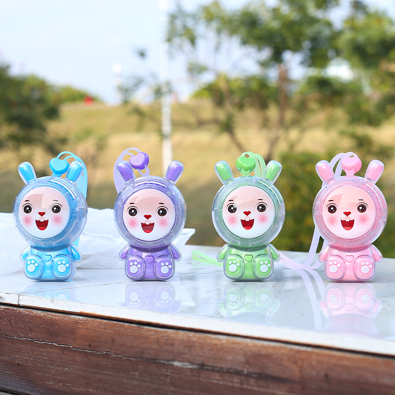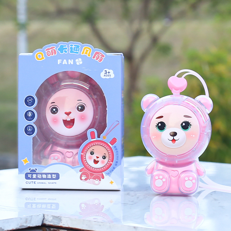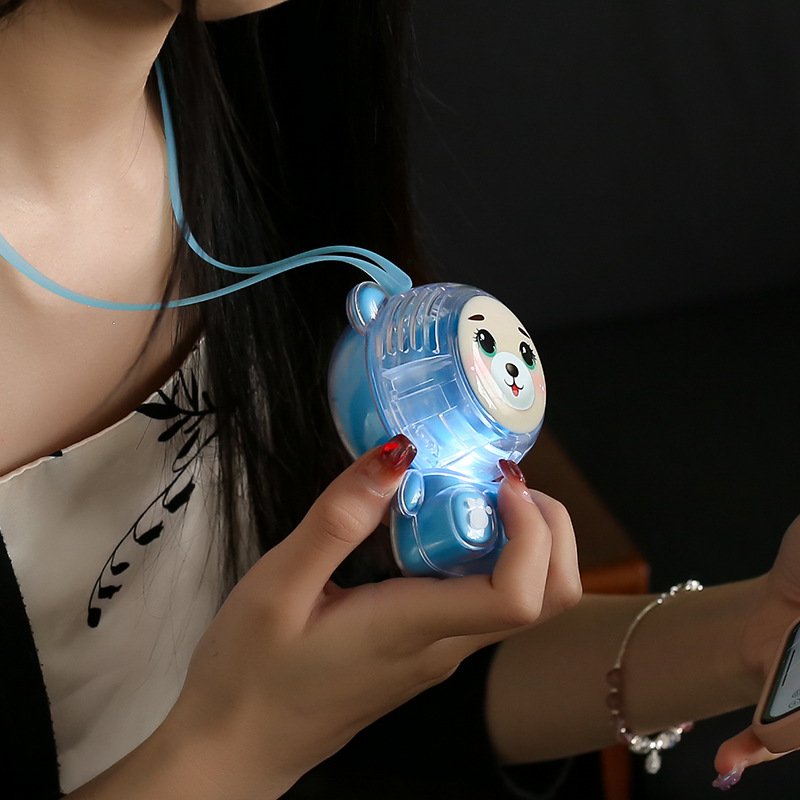 萌宠兔子挂脖无叶风扇USB充电学生便携手持静音七彩Y夜灯迷你小风