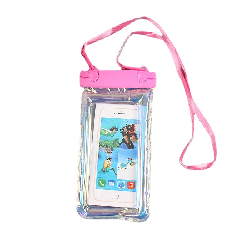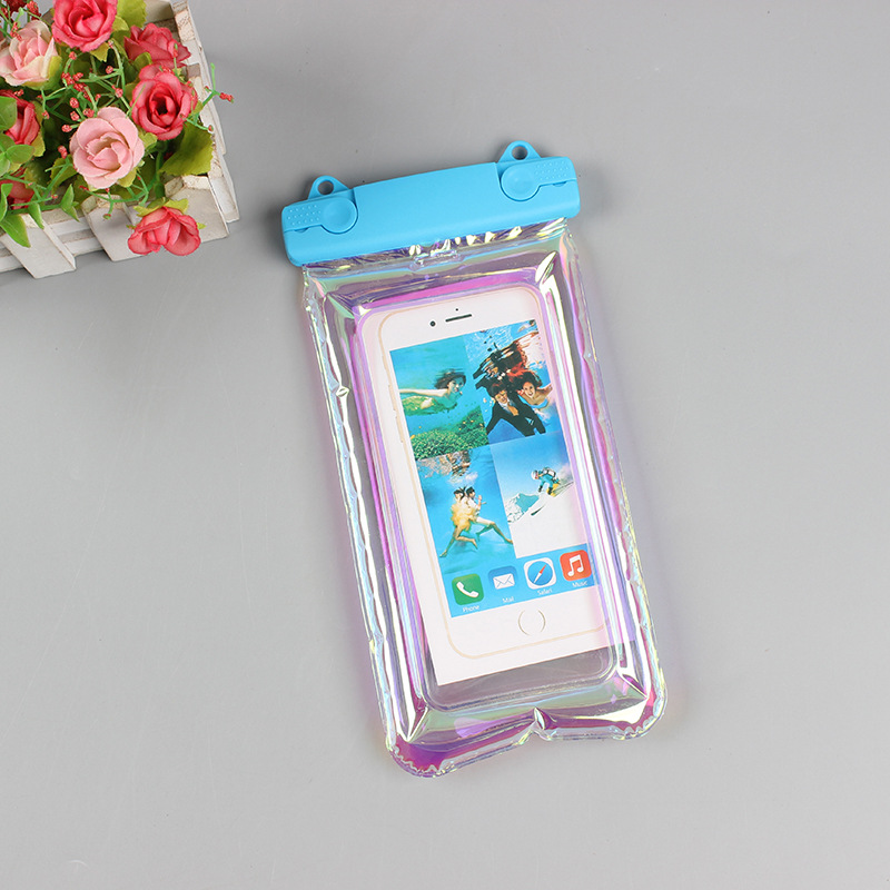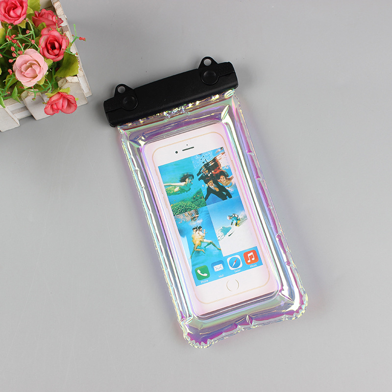 现货批发镭射幻彩充气气囊手机防水袋游泳潜水沙滩pvc手机保护套