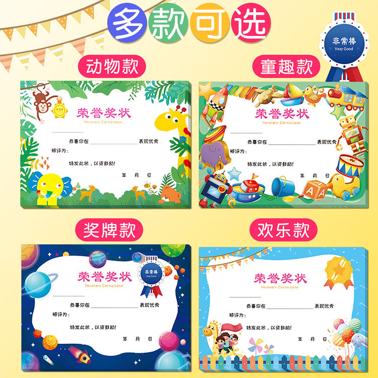 小学生奖状卡通可爱创意儿童幼儿园通用表彰表扬多款奖状荣誉证书