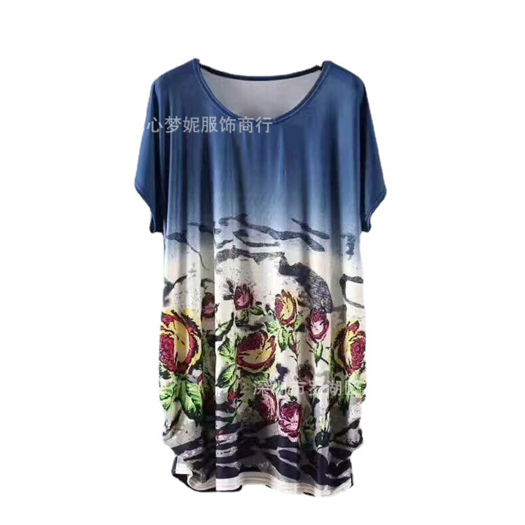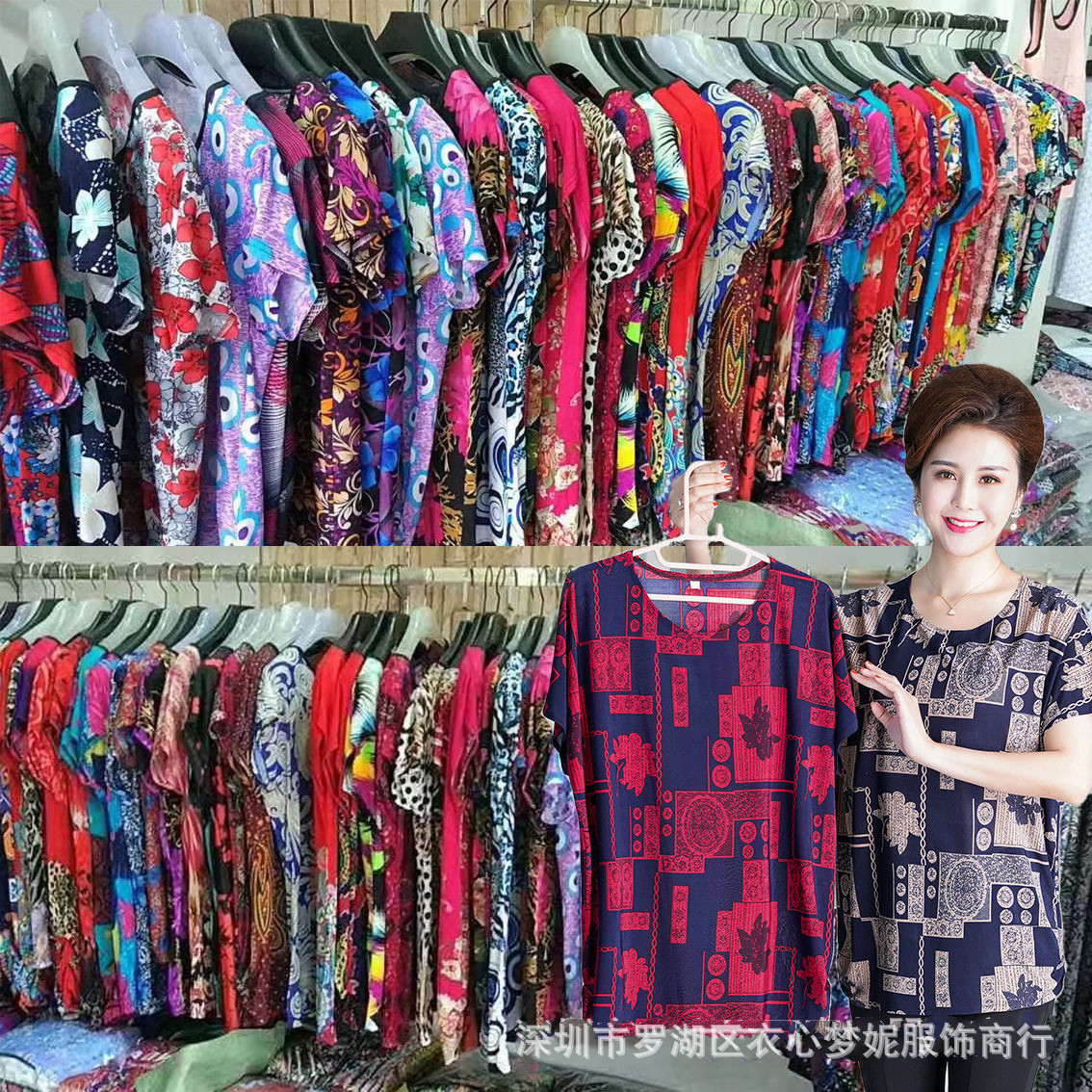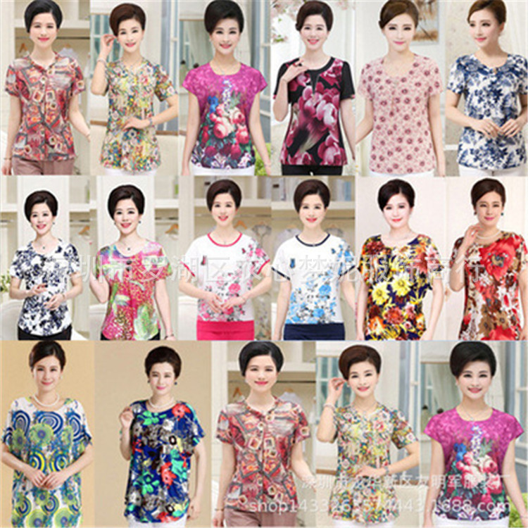 厂家年夏天新款妈妈装大码中老年冰丝短袖t恤宽松舒适上衣地摊货