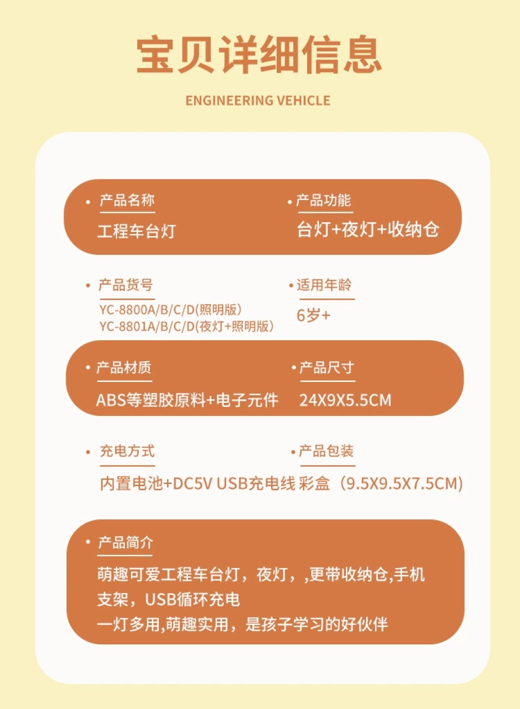 创意卡通小台灯USB充电便携式儿童阅读卧室夜灯学生阅读护眼台灯