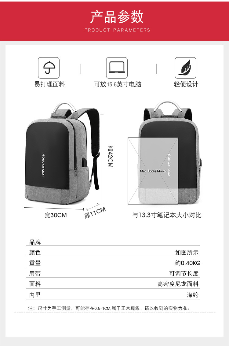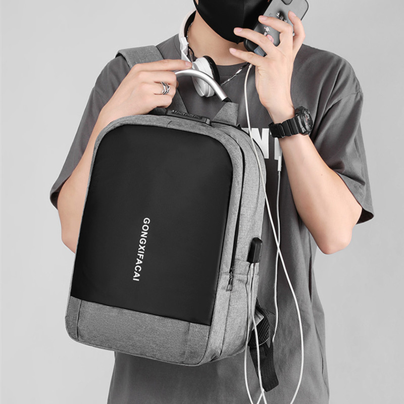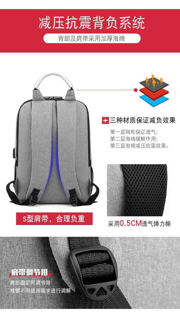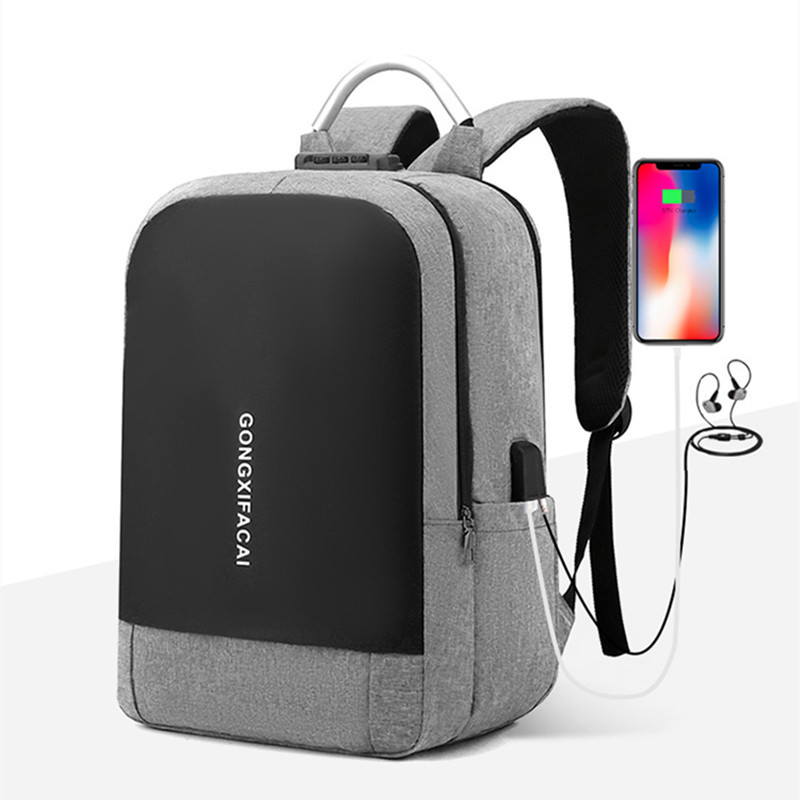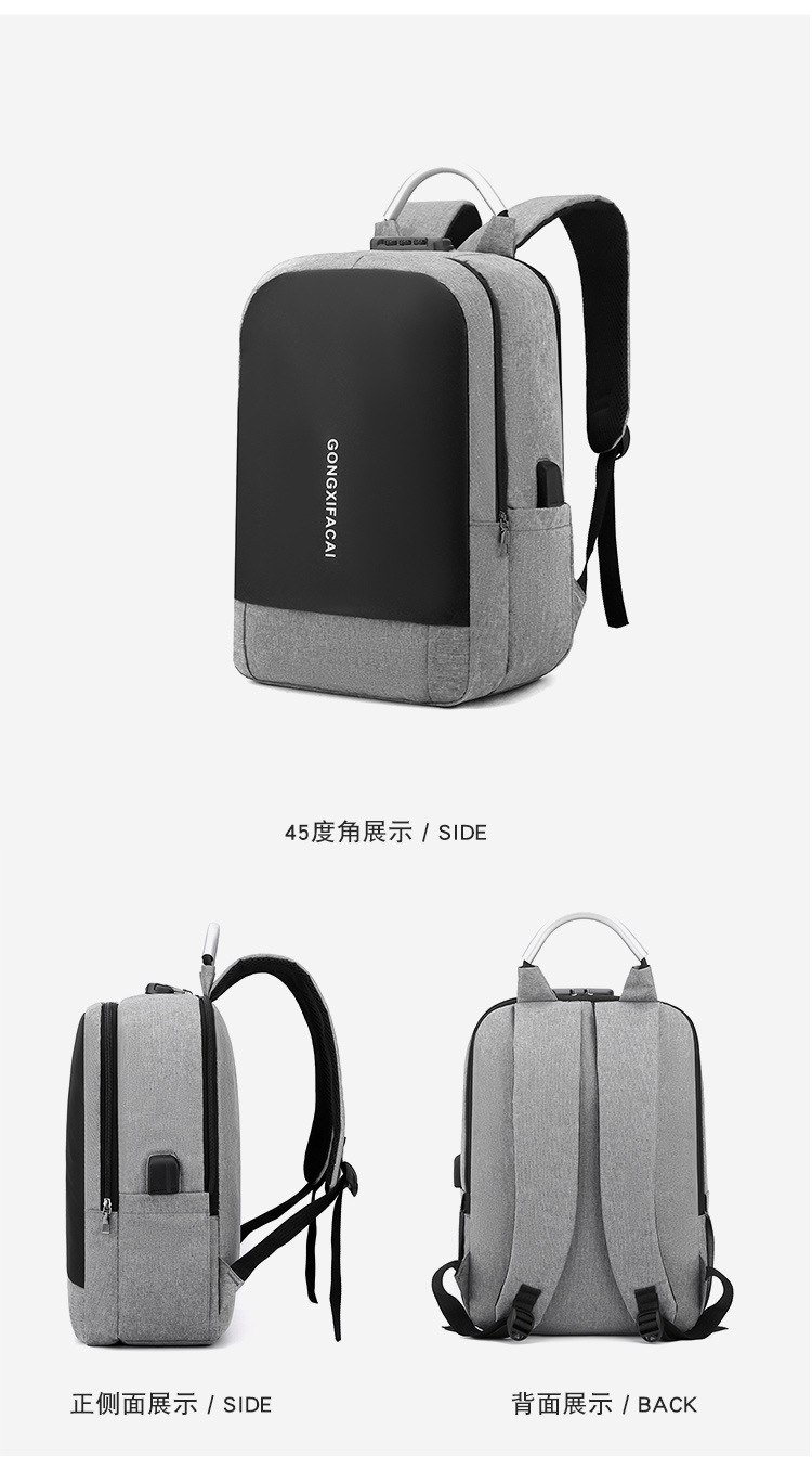 商务通勤男士电脑背包密码出差双肩包大学生日常书包