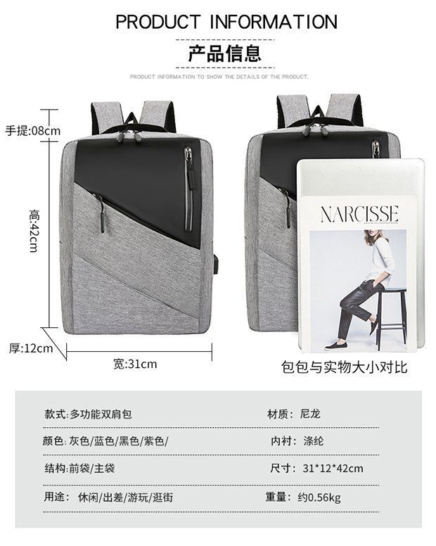跨境外贸男士背包新款简约商务电脑包时尚休闲学生书包旅行双肩包