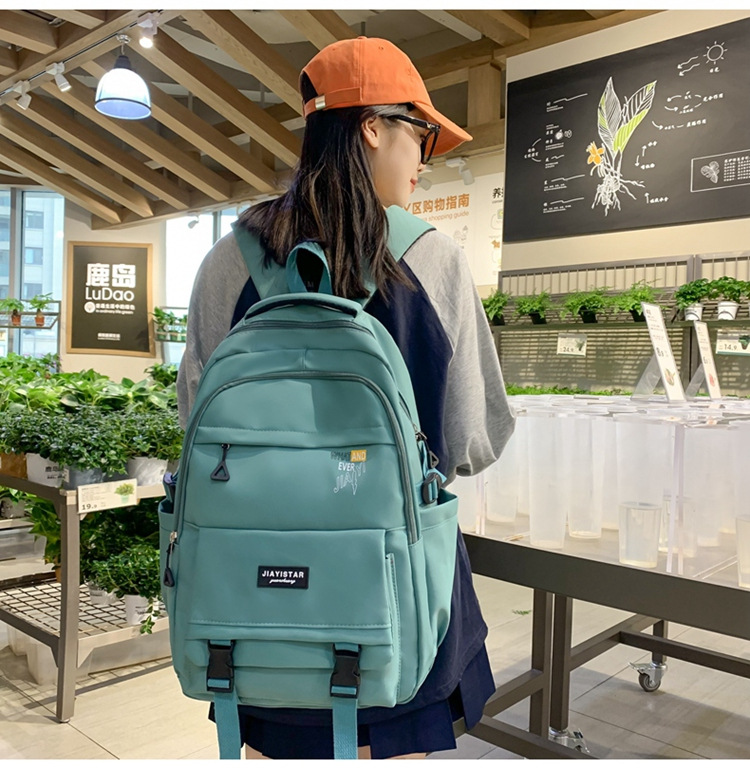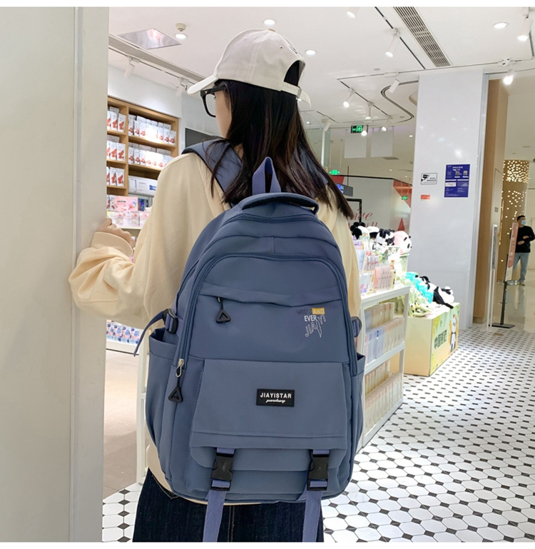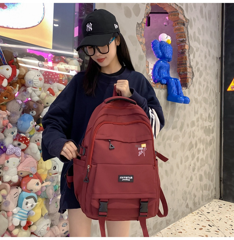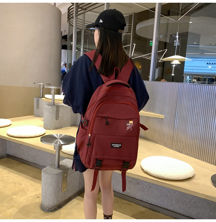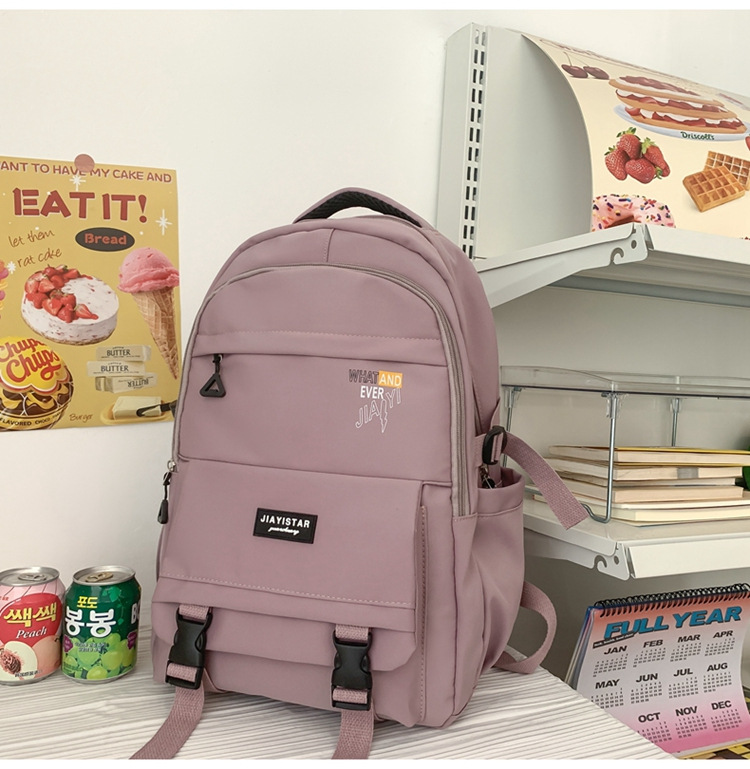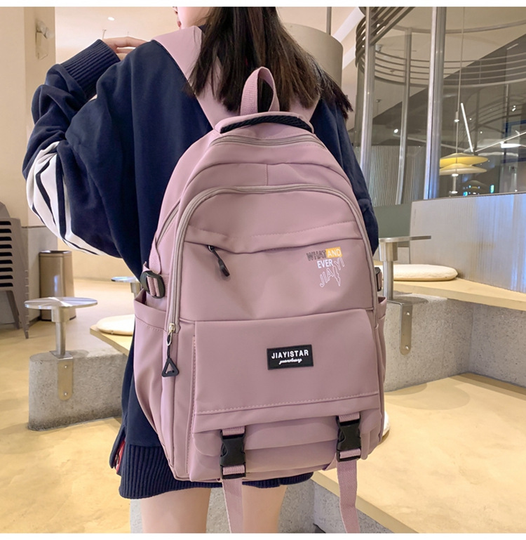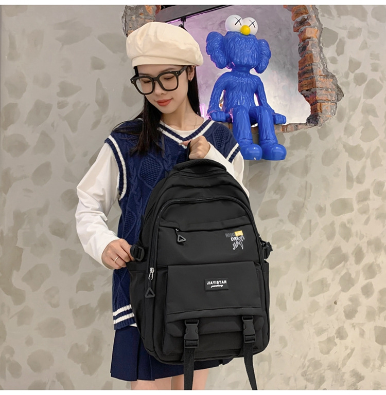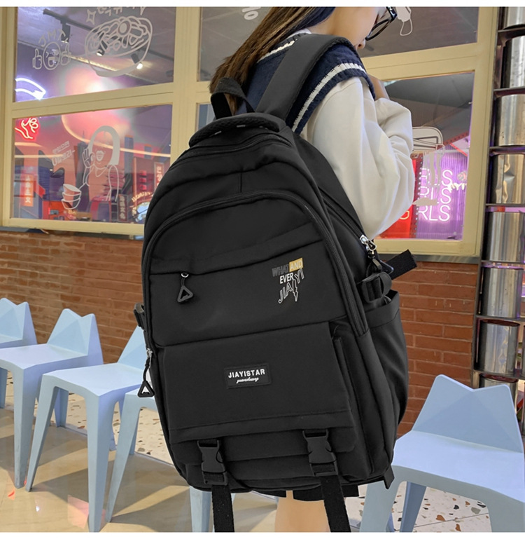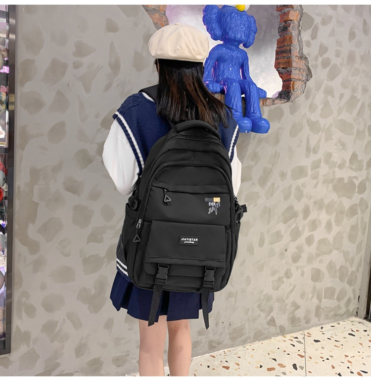 学生书包女今年新款初中生高中生背包简约宽肩带双肩包