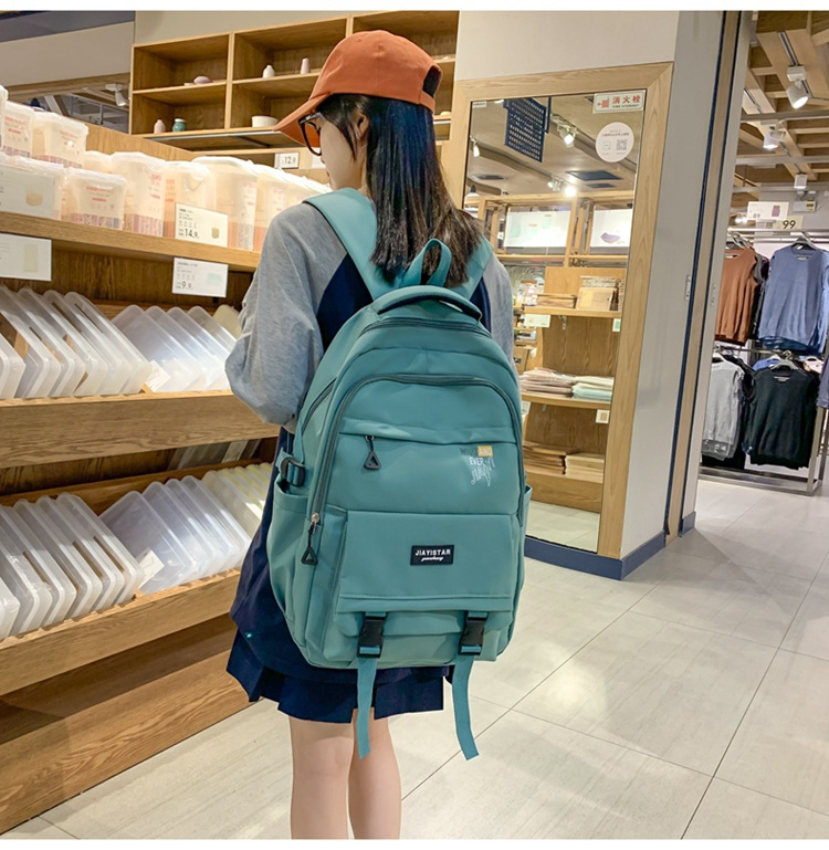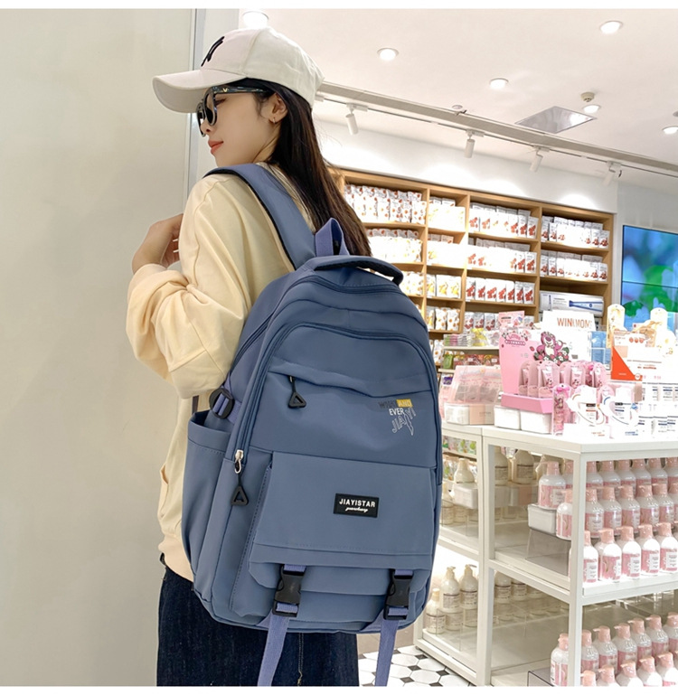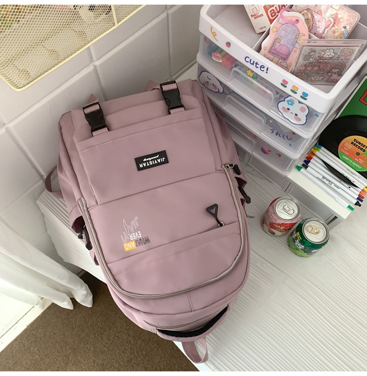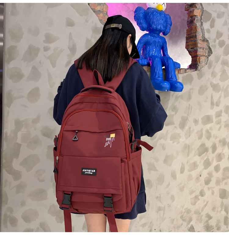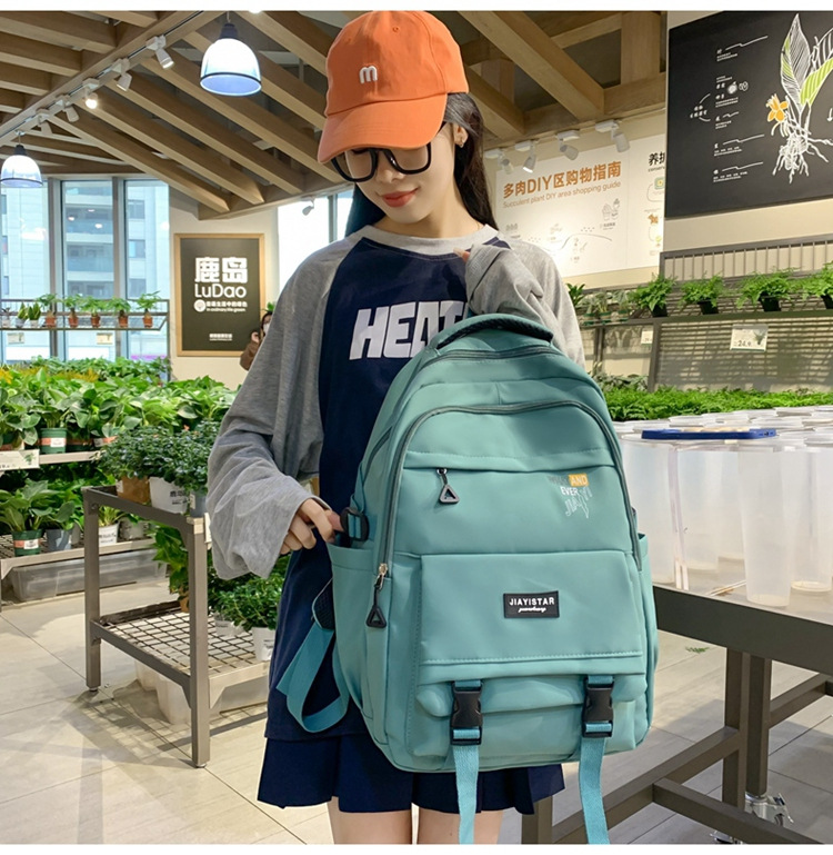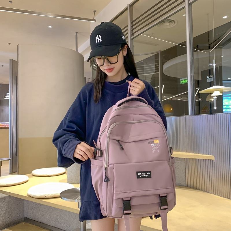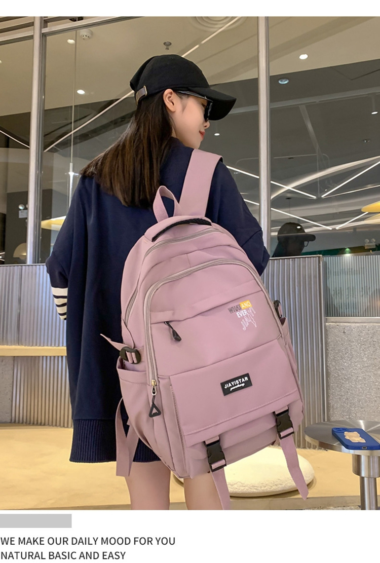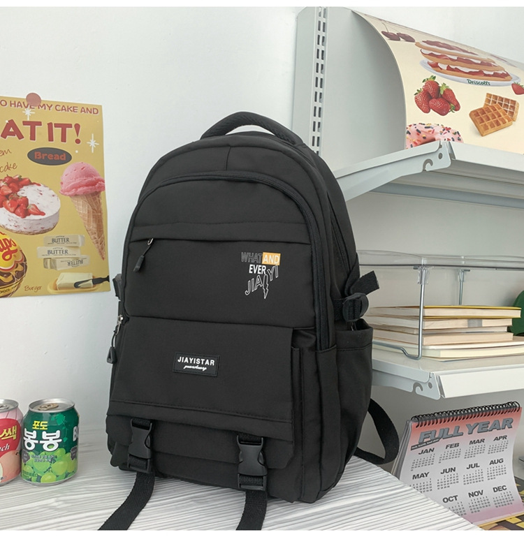 学生书包女今年新款初中生高中生背包简约宽肩带双肩包