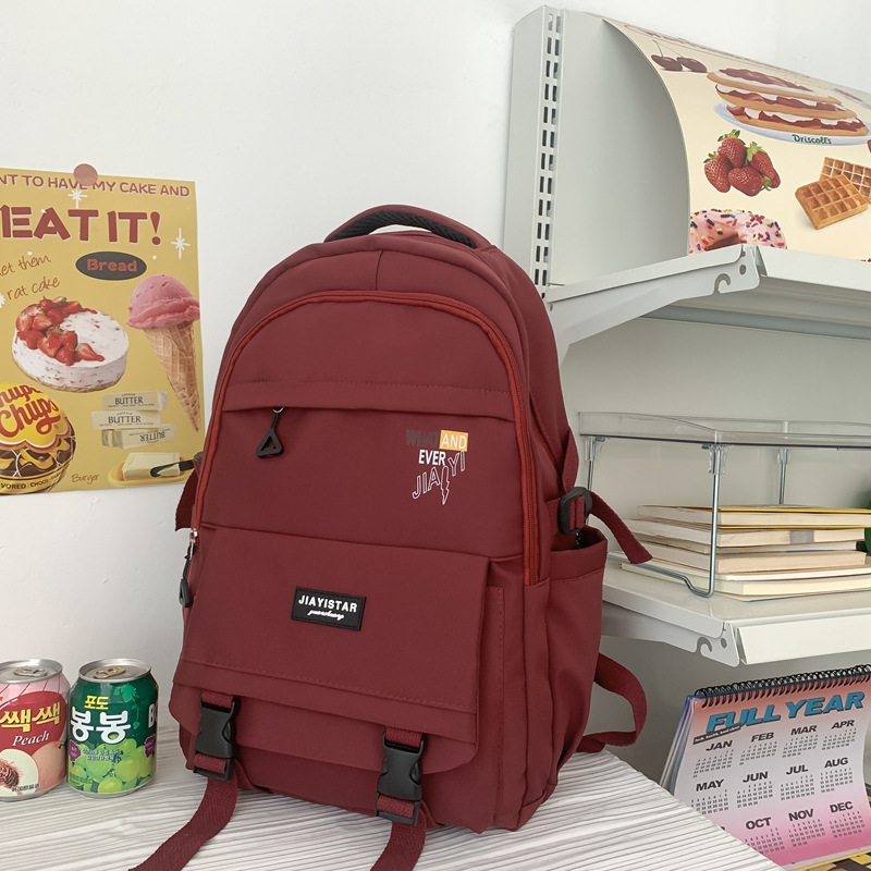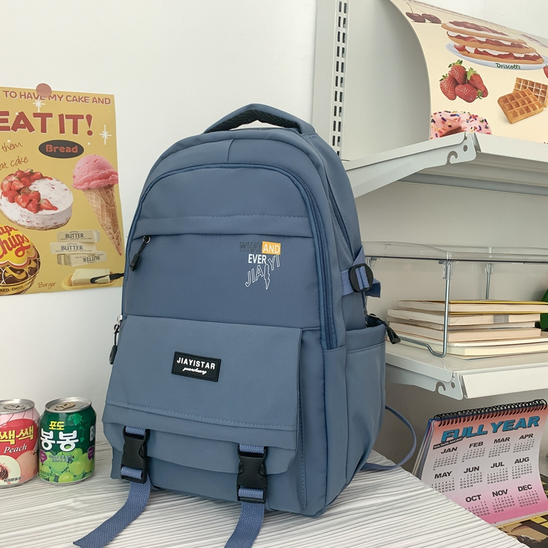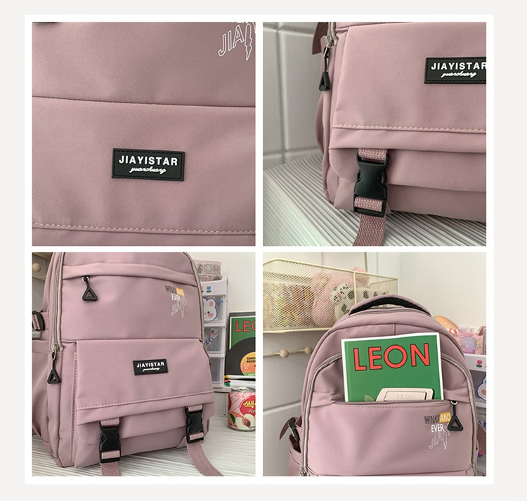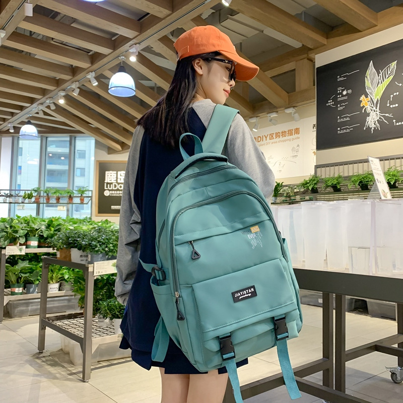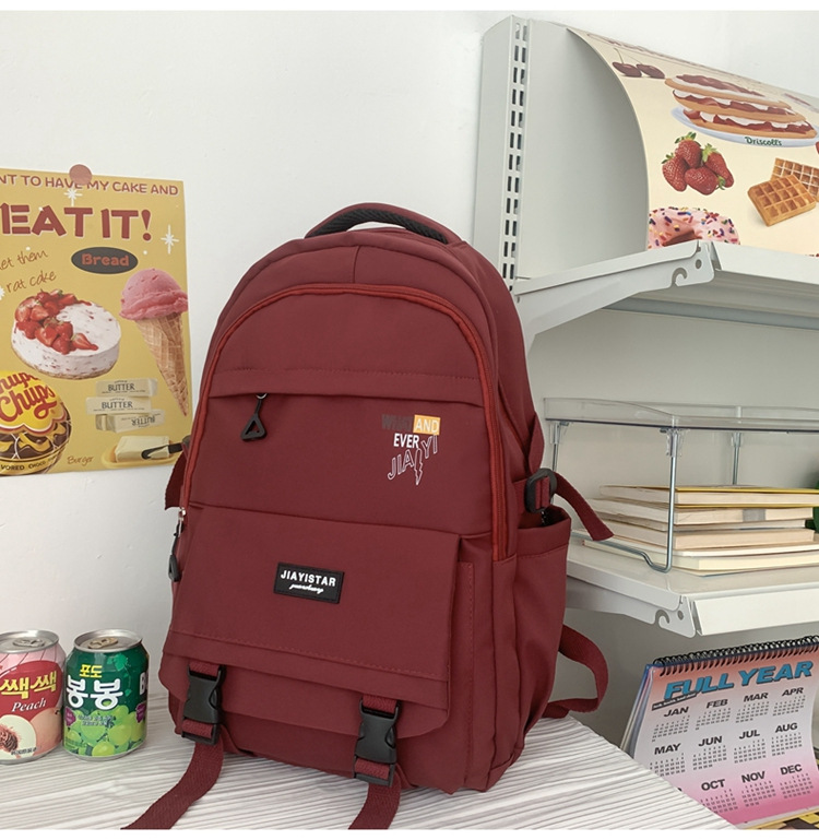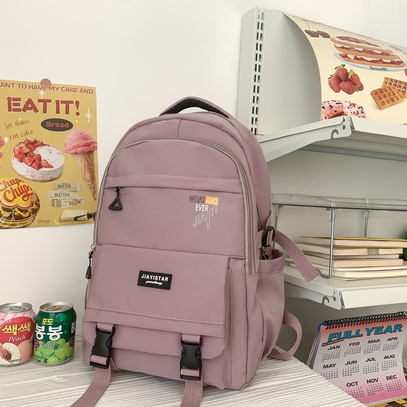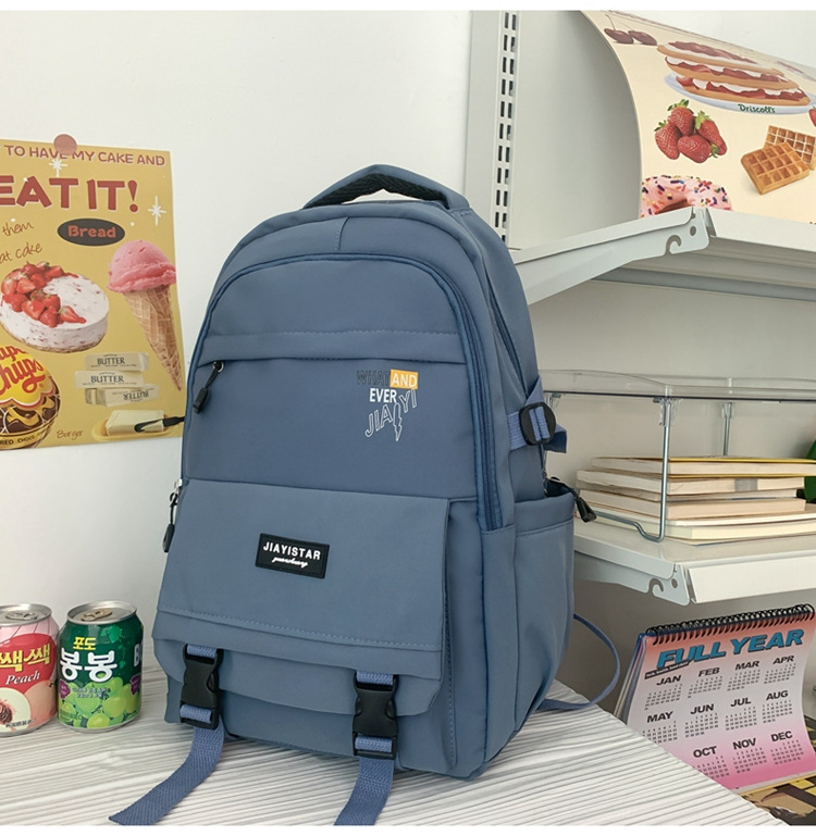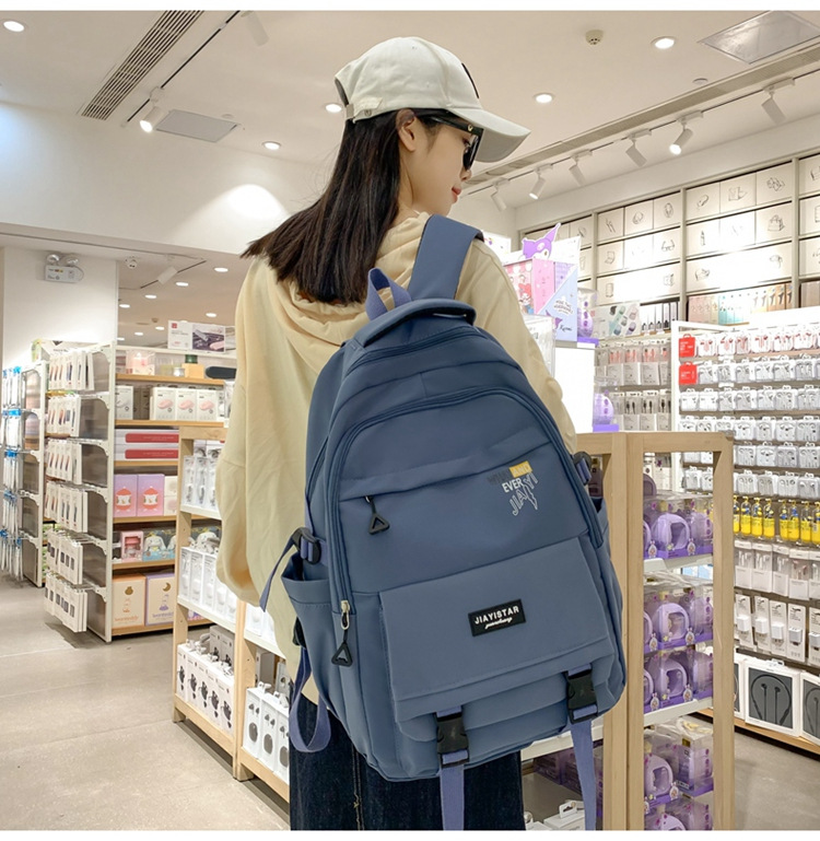学生书包女今年新款初中生高中生背包简约宽肩带双肩包