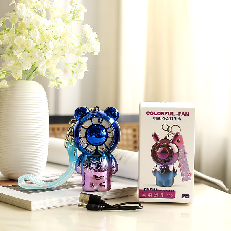 抖音同款暴力熊小风扇渐变电镀多彩色学生钥匙扣挂件USB充电风扇