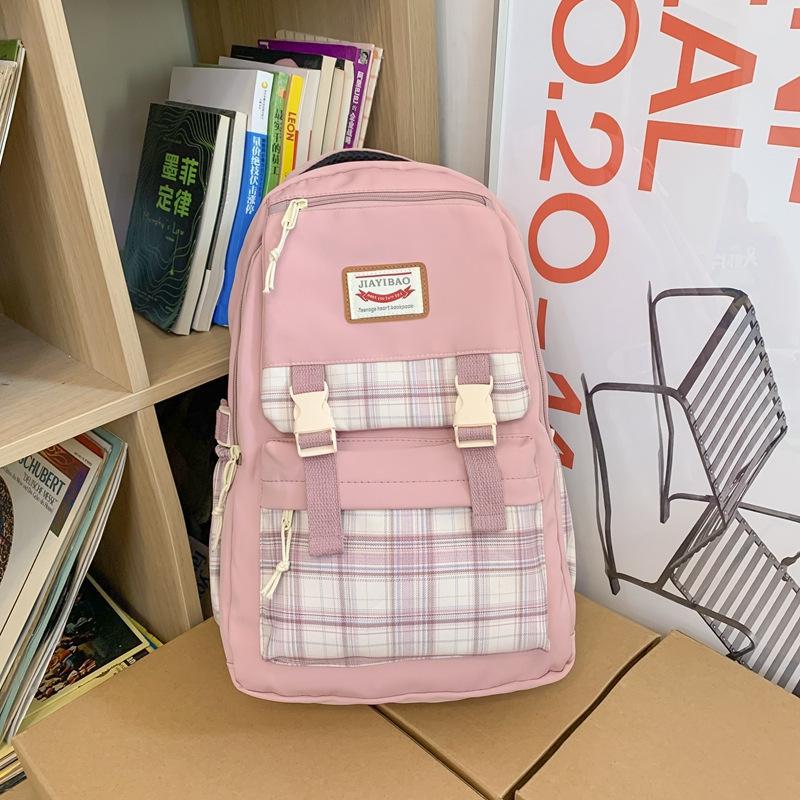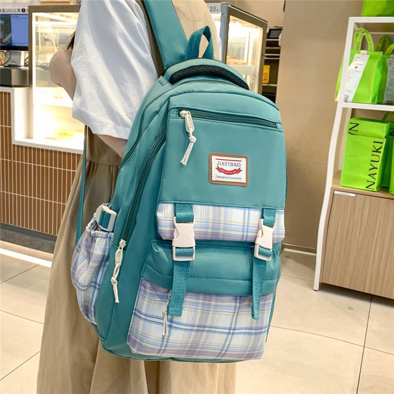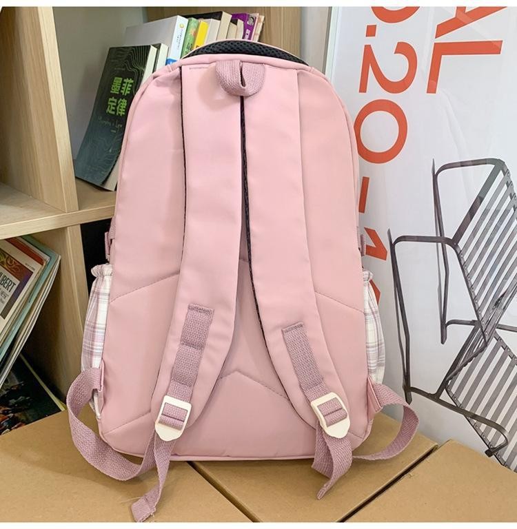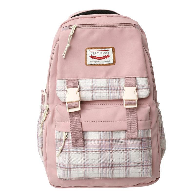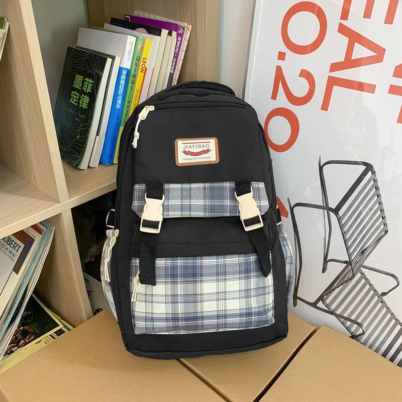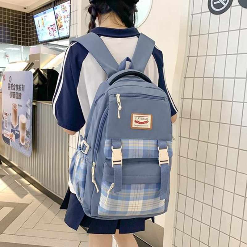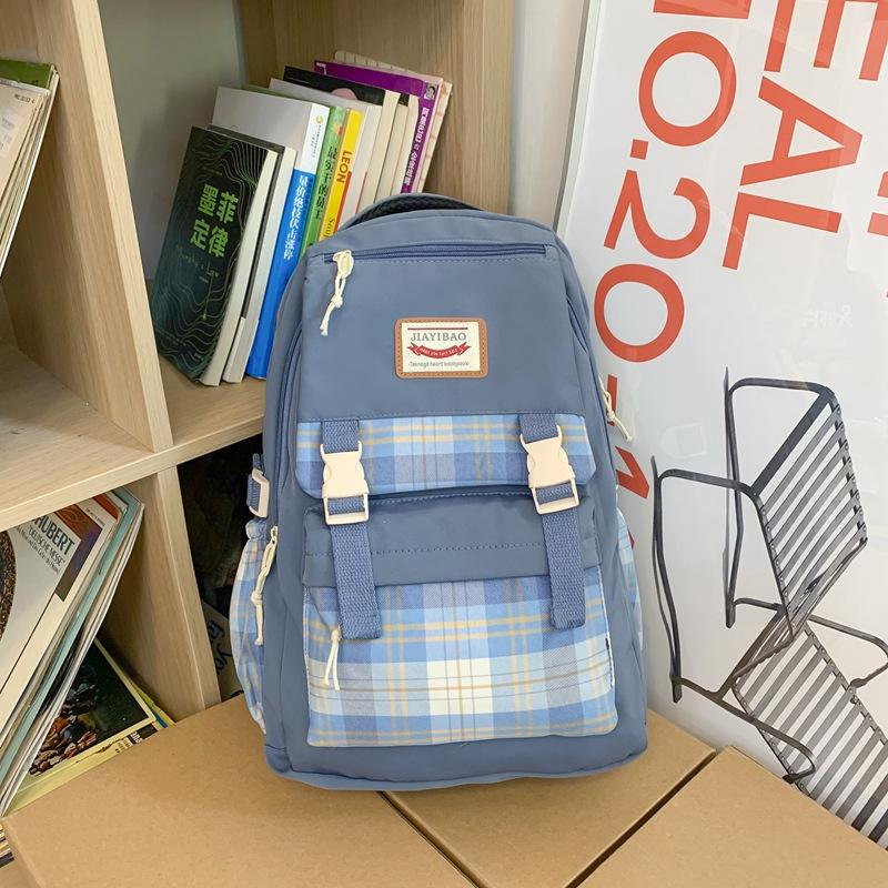初中学生书包小学生3-6年级女孩书包格子校园双肩背包
