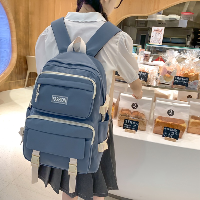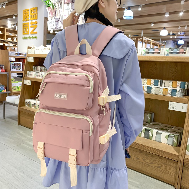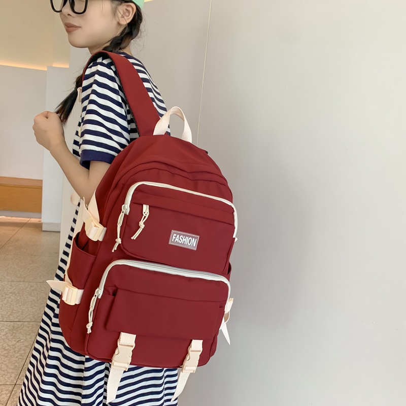 书包女ins初高中学生森系纯色背包潮流大学生情侣双肩包