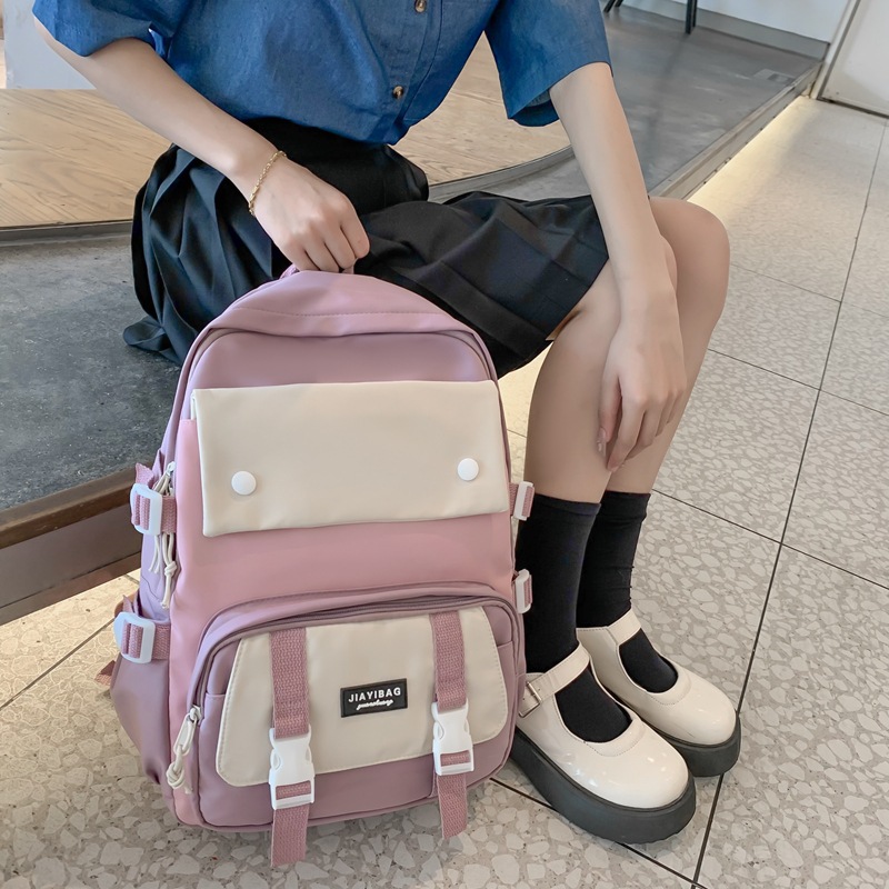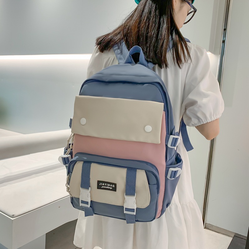 初高中学生书包新款森系ins风撞色双肩包尼龙背包