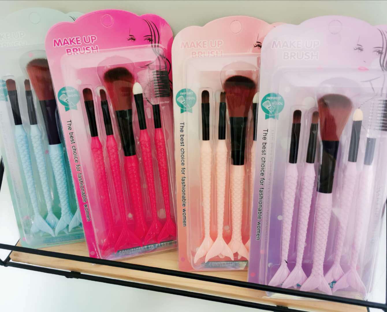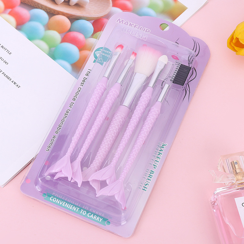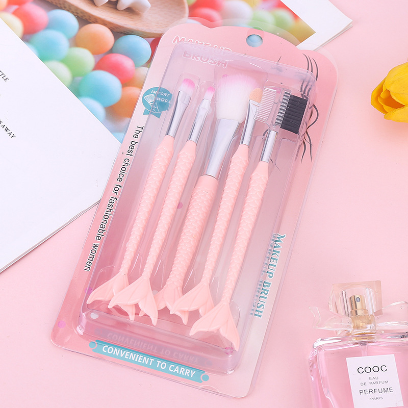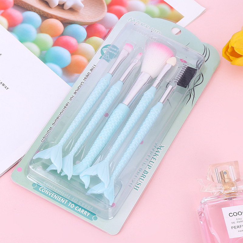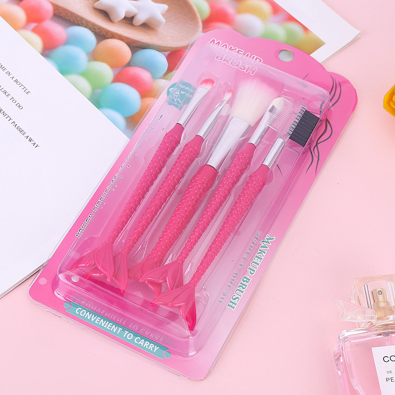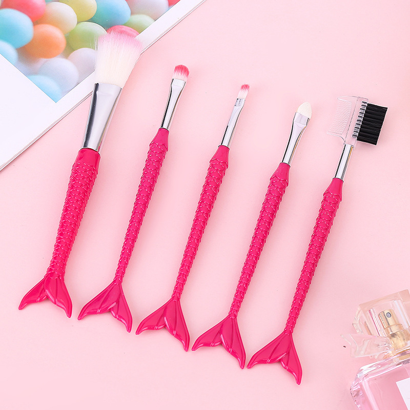 厂家直供 美人鱼尾化妆刷 五件套眼妆刷粉底刷美妆套装 一件代发