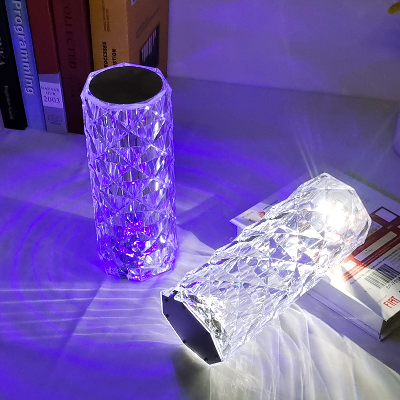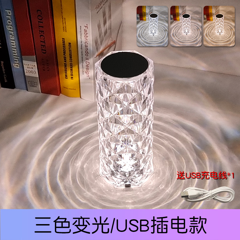 水晶台灯卧室西班牙玫瑰灯钻石网红氛围床头灯浪漫充电花瓣小夜灯