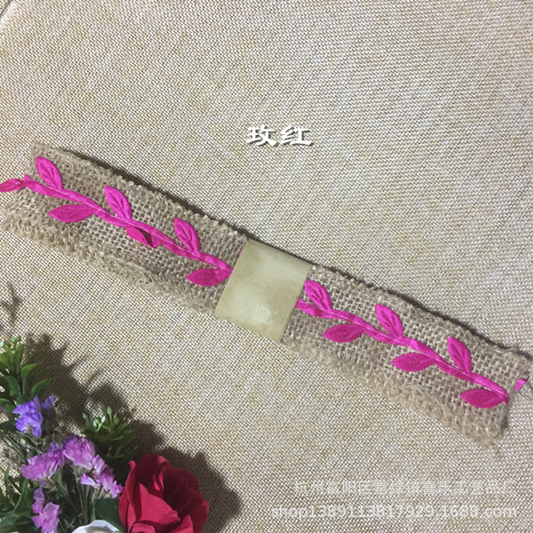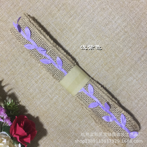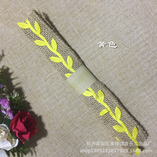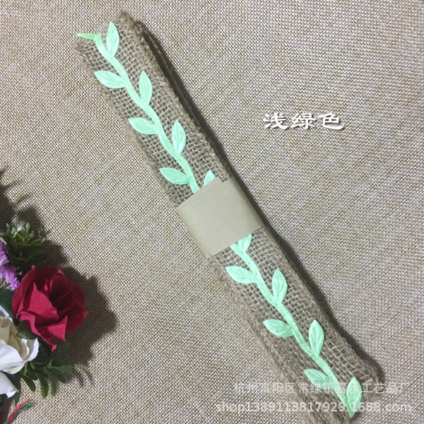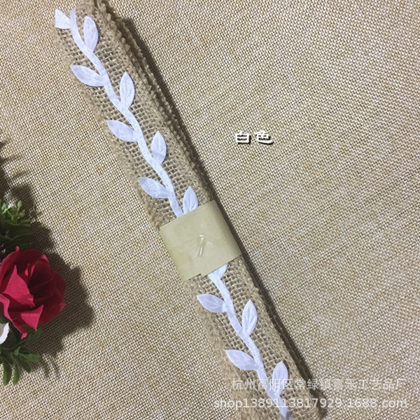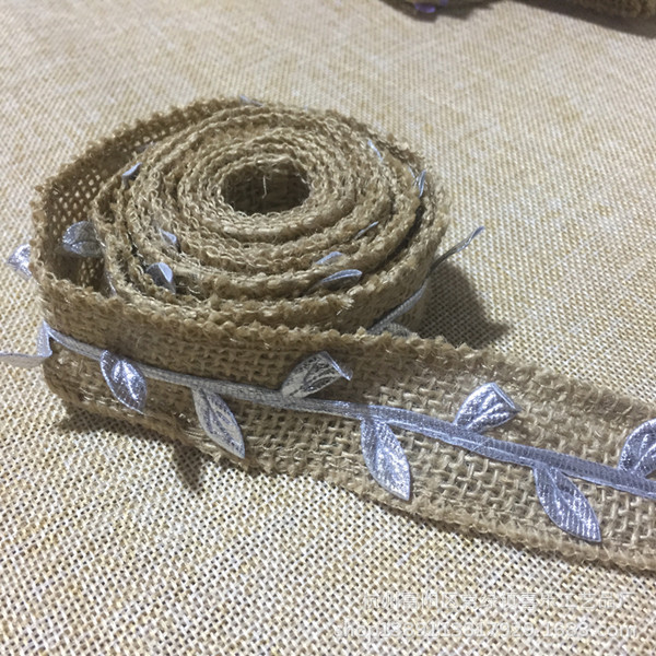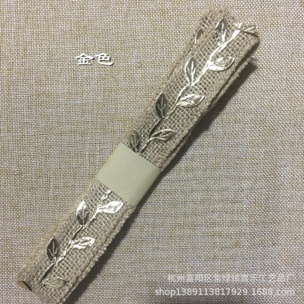 厂家供应幻彩叶子麻布卷 DIY手工材料 麻布织带 复古装饰麻织带