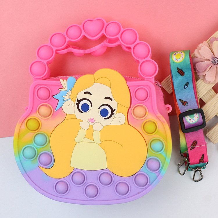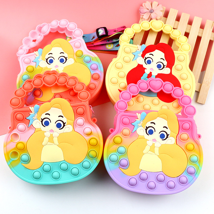 批发长发公主手提包 硅胶灭鼠先锋包包解压零钱包女生零钱斜挎包
