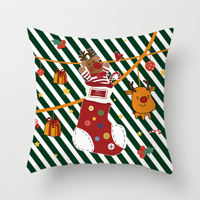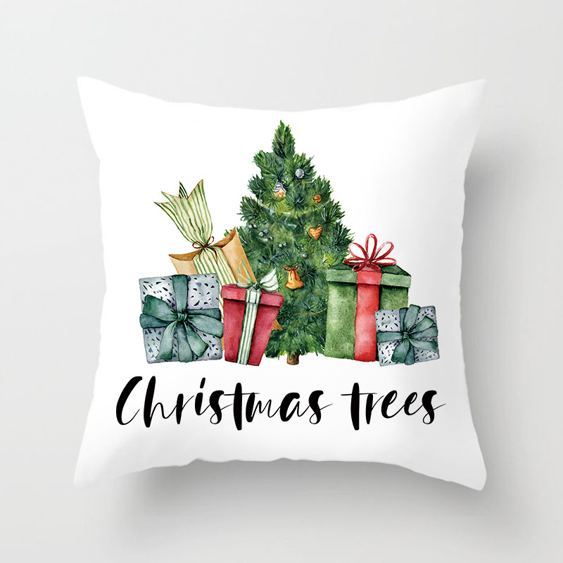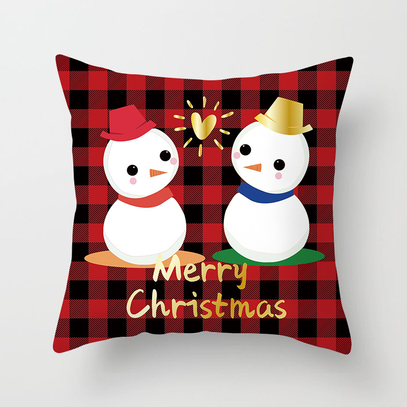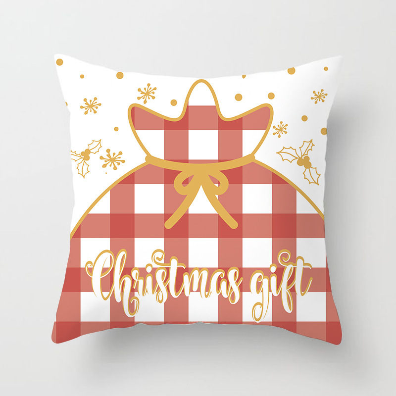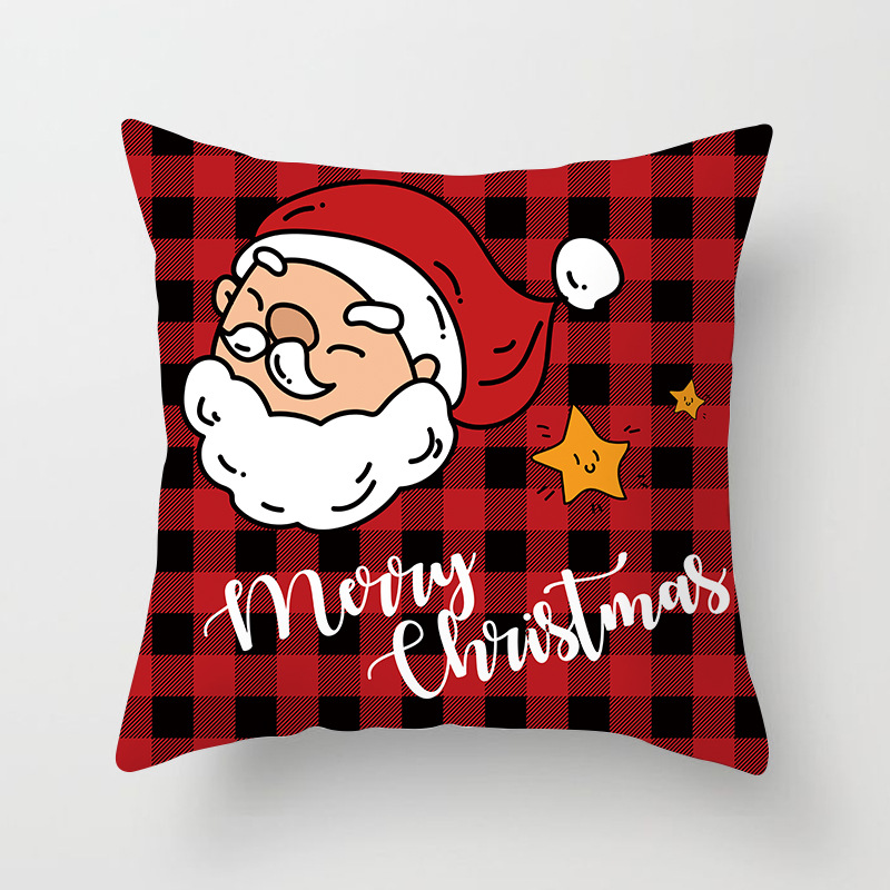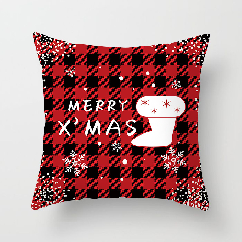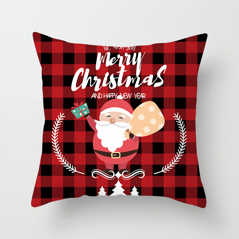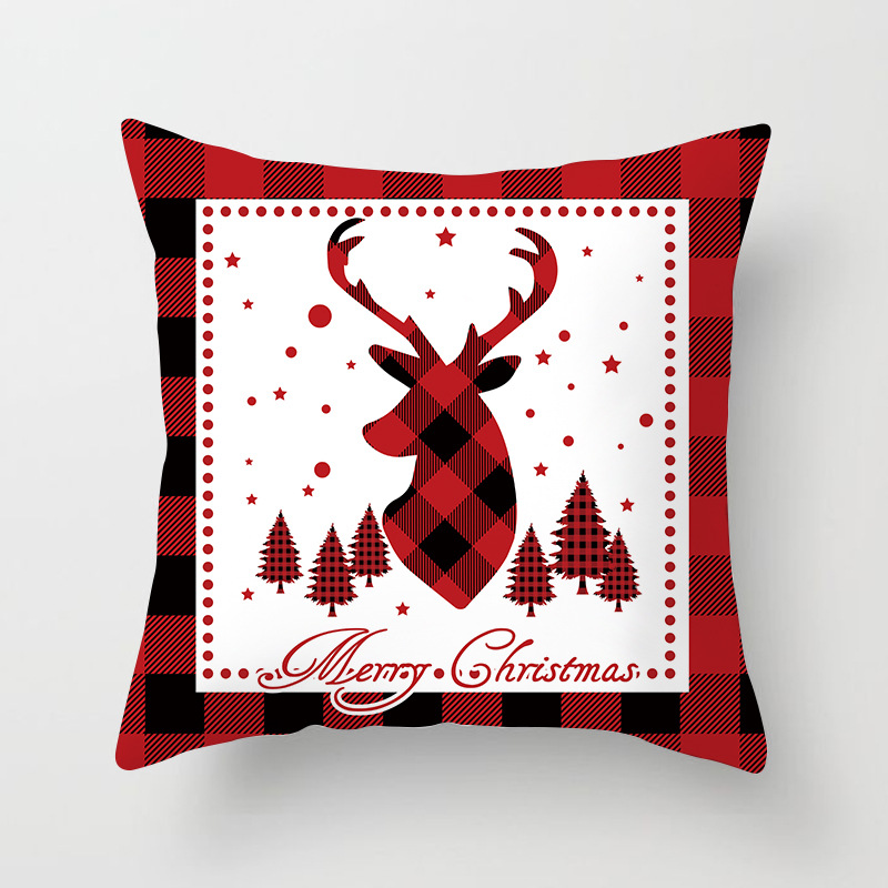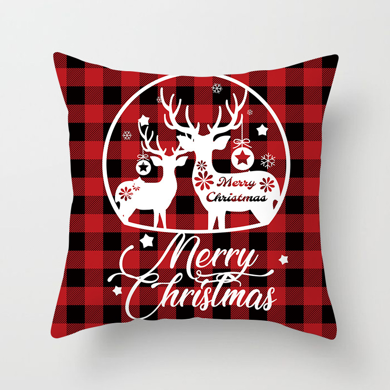 外贸 新款 圣诞 抱枕套 圣诞树 红色 方格 数码 印花 靠枕套