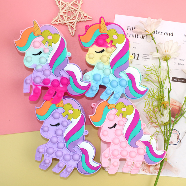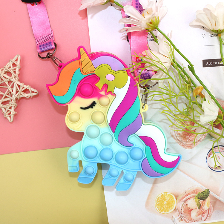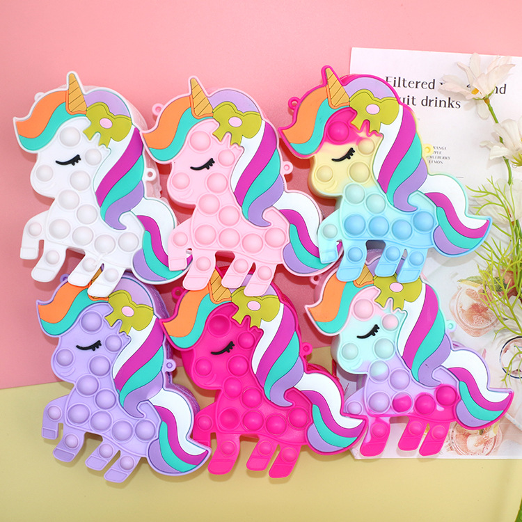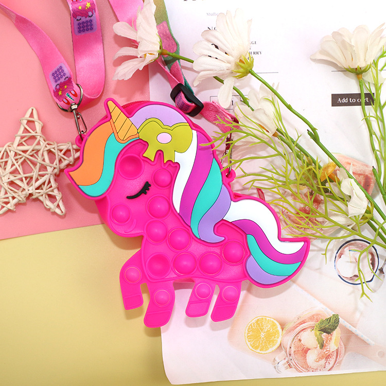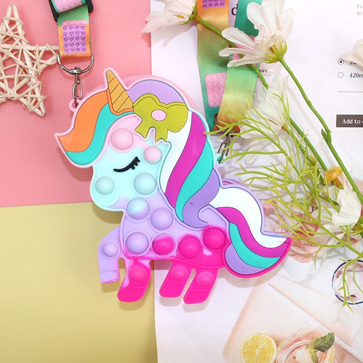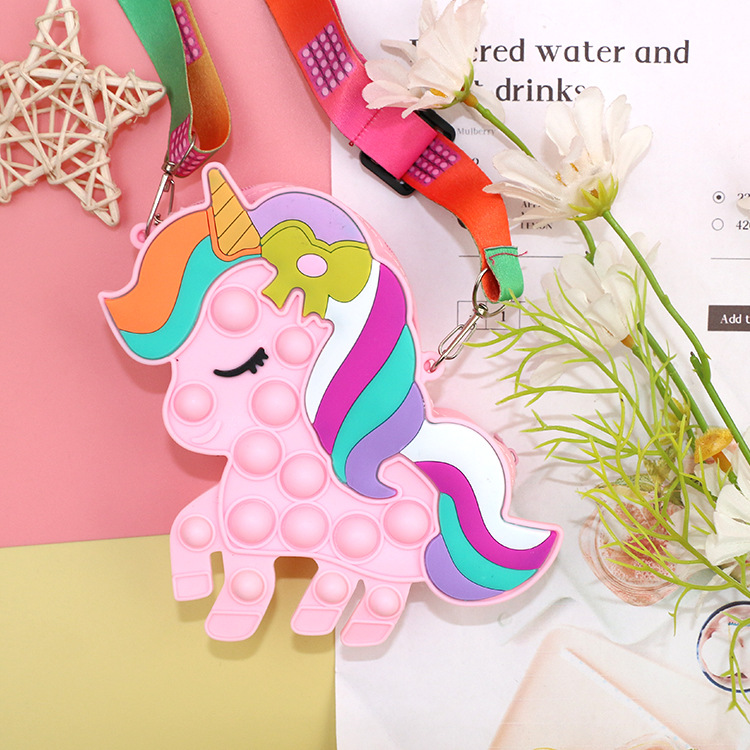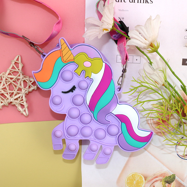 灭鼠先锋彩色马硅胶儿童斜挎包包泡泡按压捏捏乐玩具公主零钱包