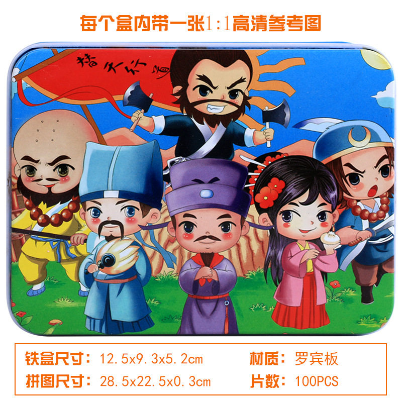100片铁盒木质拼图幼儿园宝宝开学礼品卡通动漫平面拼板早教玩具
