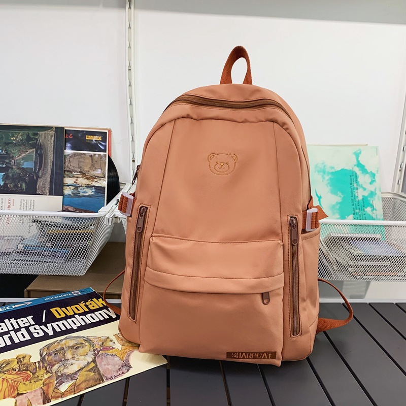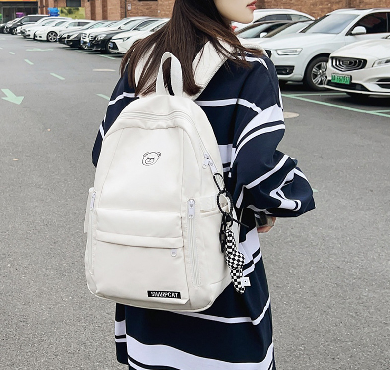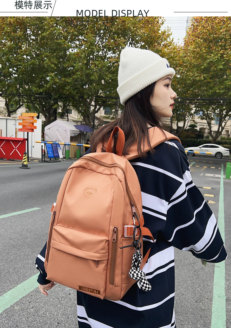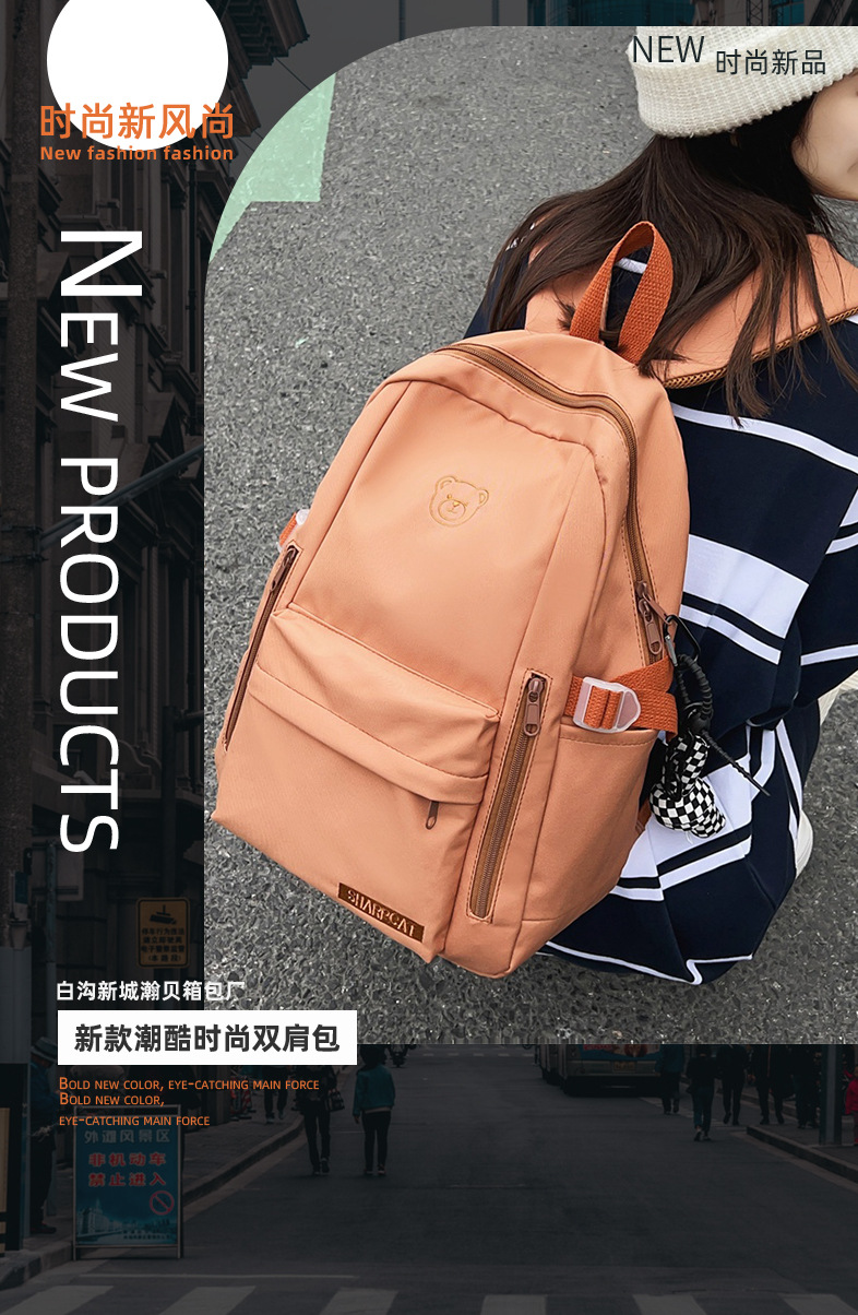 新款双肩书包女ins学院风双肩包纯色大学生简约百搭背包