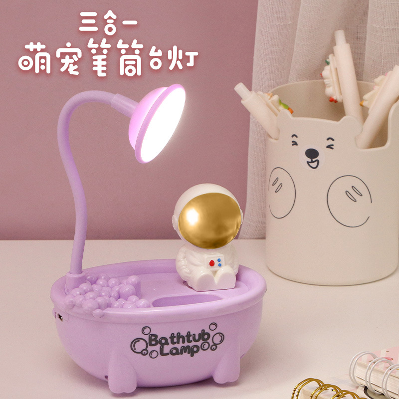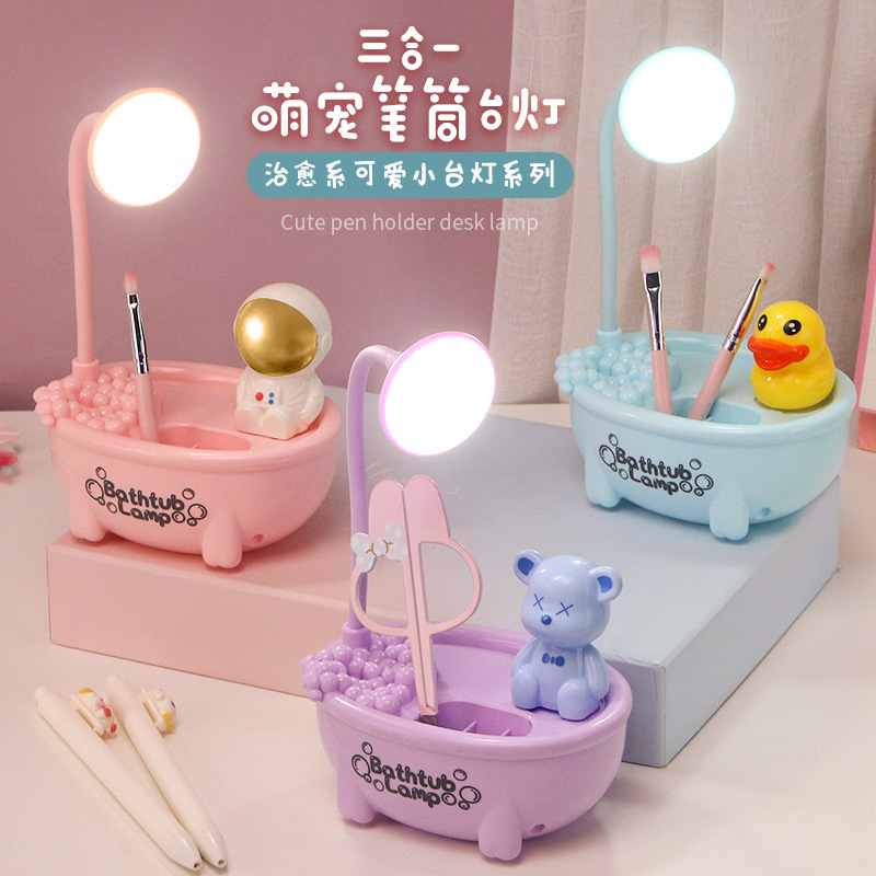 新款三合一带笔筒卷笔刀桌面台灯萌宠卡通宿舍usb充电可爱小夜灯