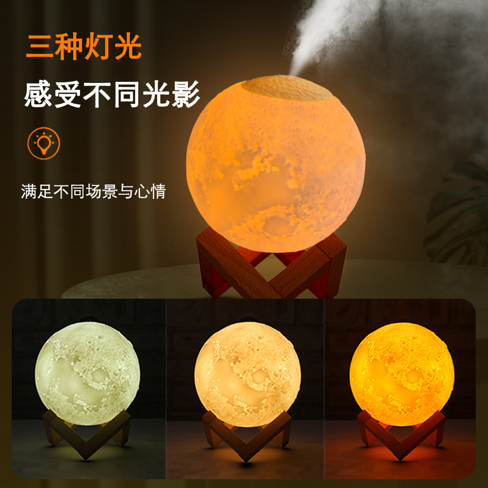跨境亚马逊爆款3D月球灯加湿器usb创意办公室桌面卧室家用雾化器