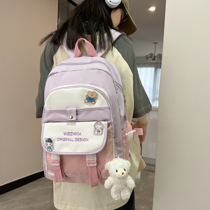 新款初中生高中生书包女生双肩包可爱尼龙背包学生包