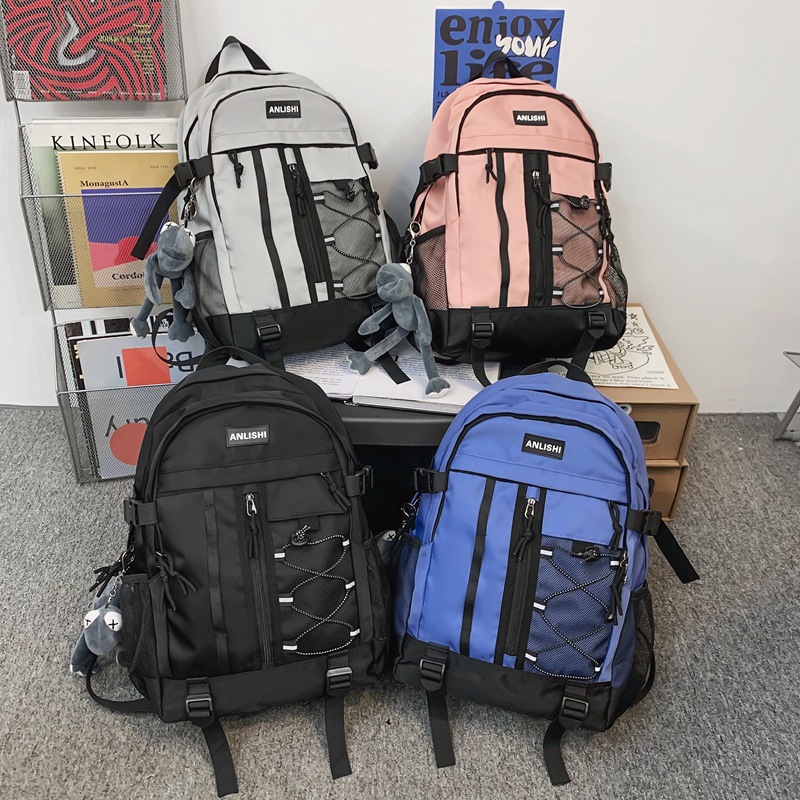 纯色时尚尼龙双肩包女书包女高中轻便背包女大学生双肩包