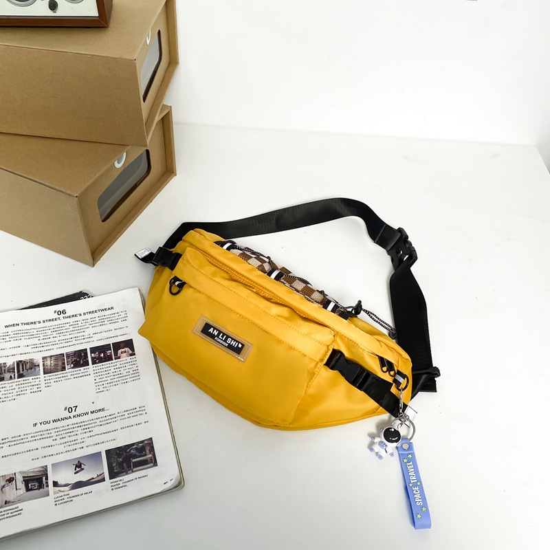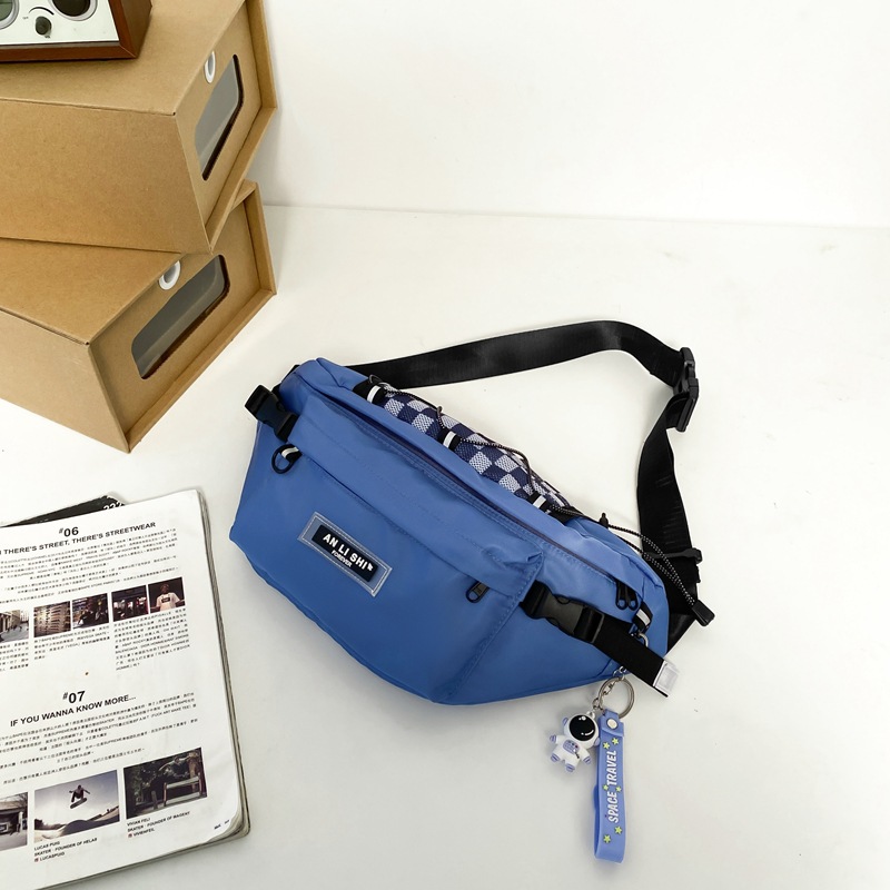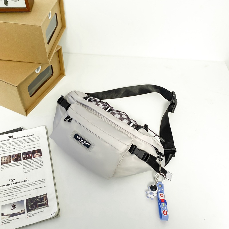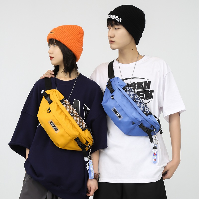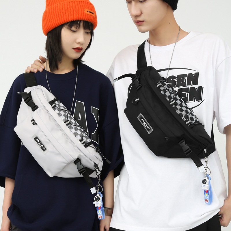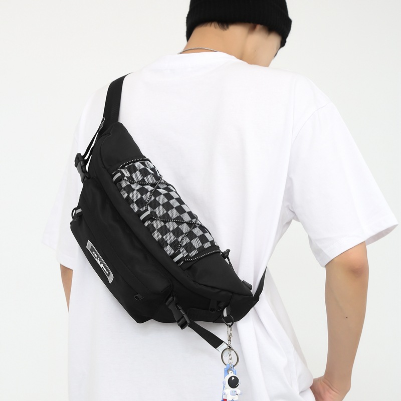 潮流格纹机能斜挎包男潮牌包包休闲腰包女街头潮休闲情侣胸包小