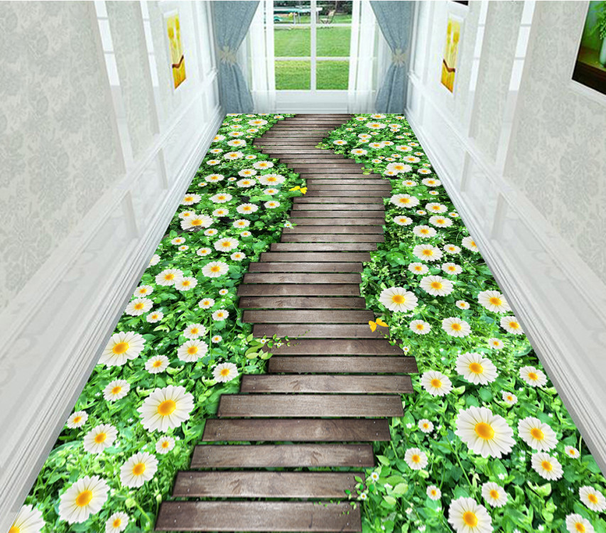 跨境欧式床边客厅地毯印花卧室走廊毯满铺卷材地毯地垫可定制