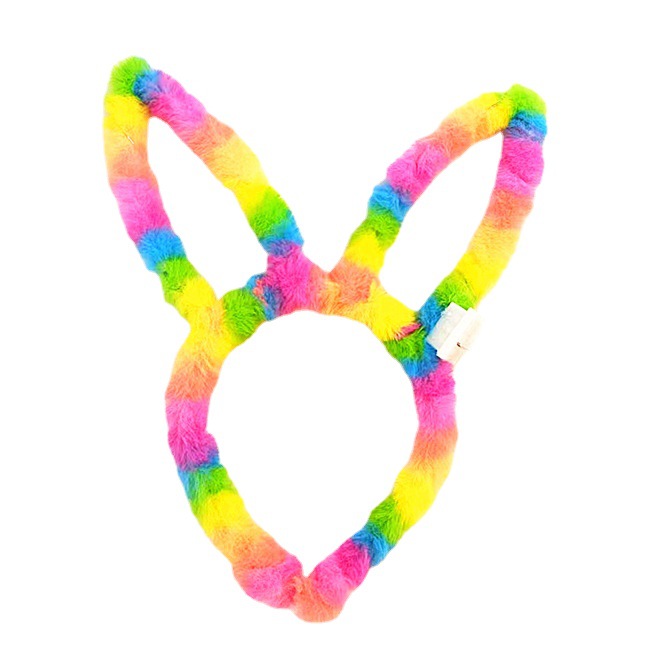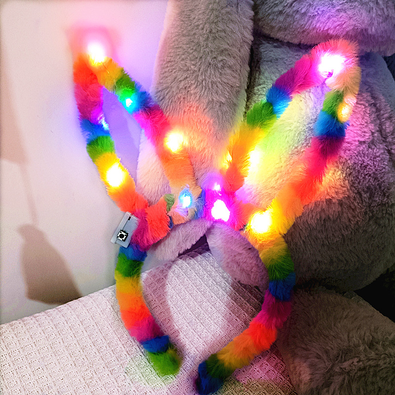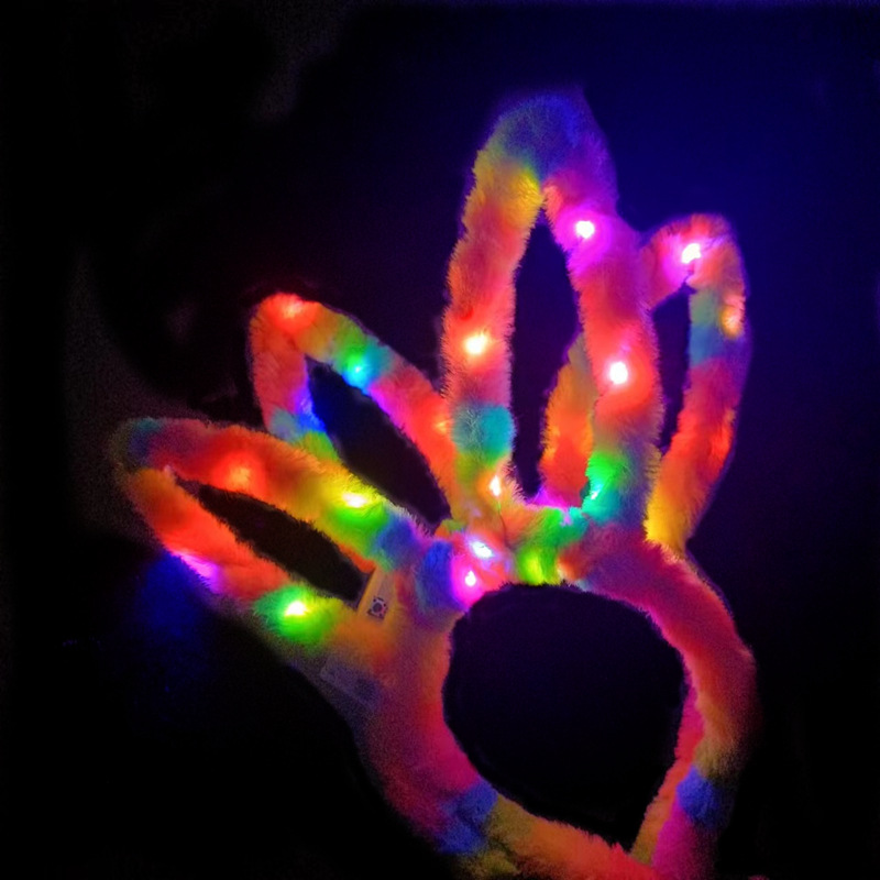 发光兔耳朵发箍批发夜市发光玩具毛绒兔耳朵头饰七彩头箍国庆地摊