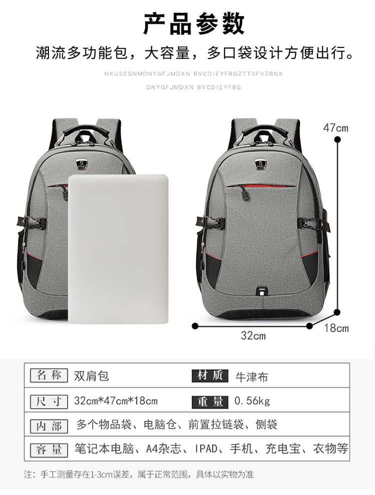 厂家外贸电脑包usb充电背包 跨境亚马逊电脑背包