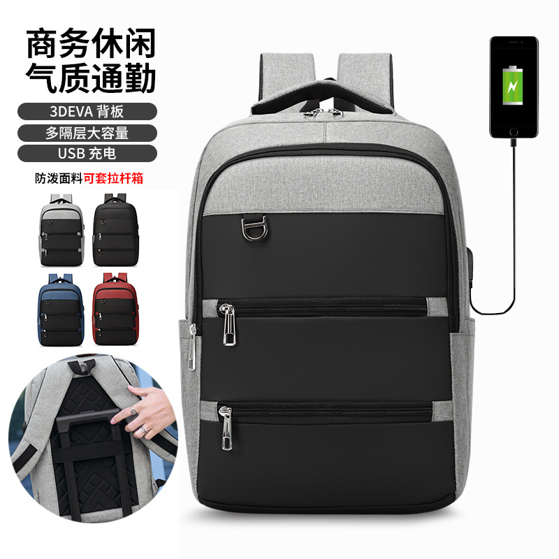 新款商务双肩包男轻便书包休闲户外旅行电脑背包USB充电背包女包