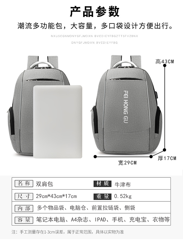 外贸出口密码锁双肩包商务休闲笔记本电脑包跨境亚马逊男士双肩包