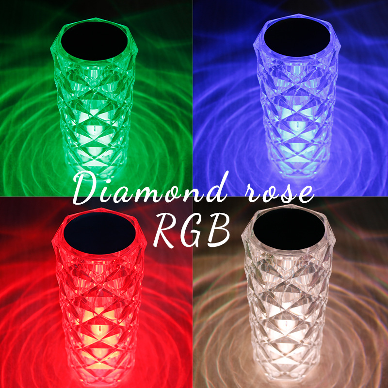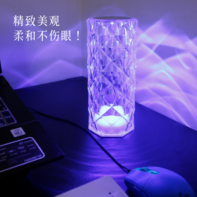 水晶台灯卧室西班牙玫瑰灯钻石网红氛围床头灯浪漫充电花瓣小夜灯