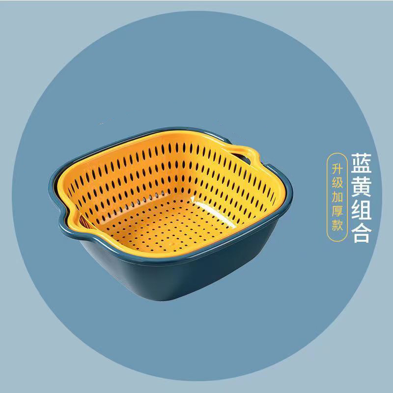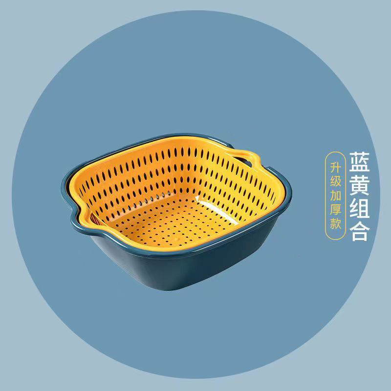 家用厨房塑料双层沥水篮6件套8件套加厚多功能洗水果洗菜篮代发