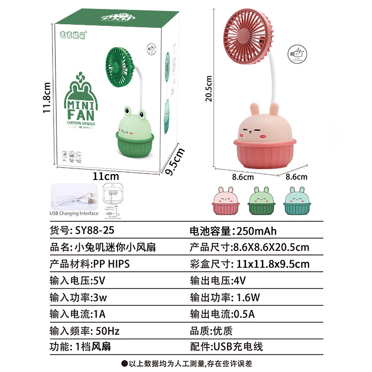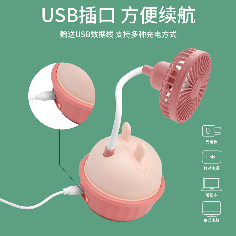 2022新款卡通可爱小兔360°调节软管USB充电小风扇迷你小风扇桌面