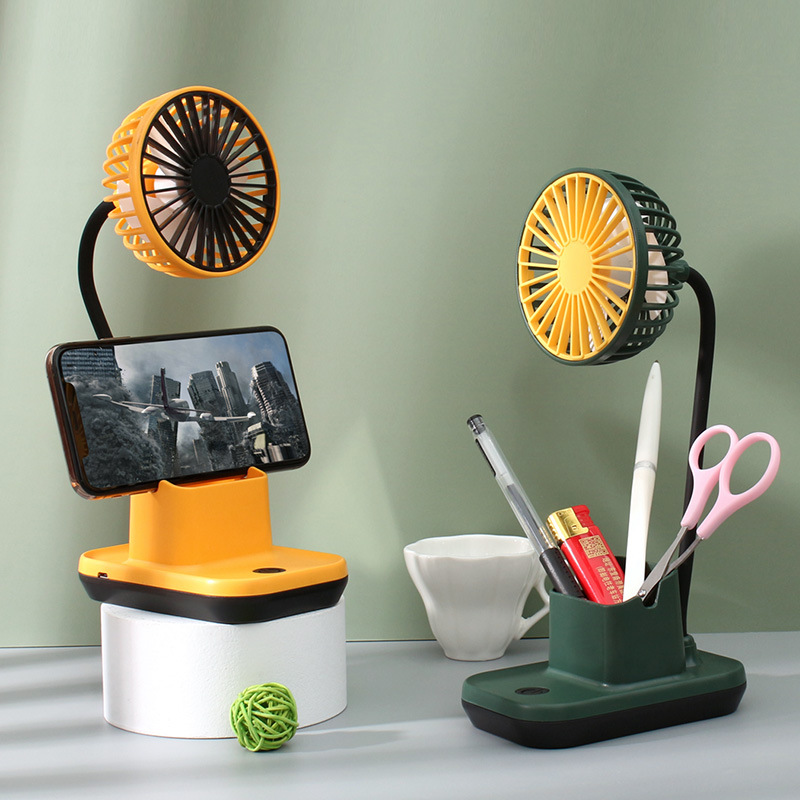 新款夏季简约USB充电风扇学生宿舍书桌风扇桌面笔筒手机支架风扇