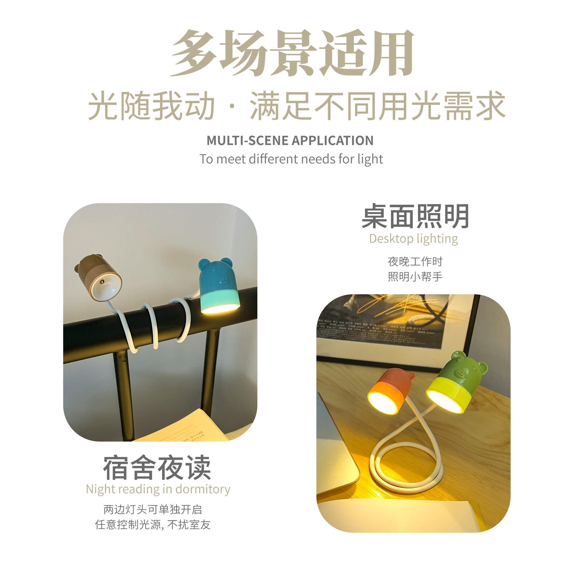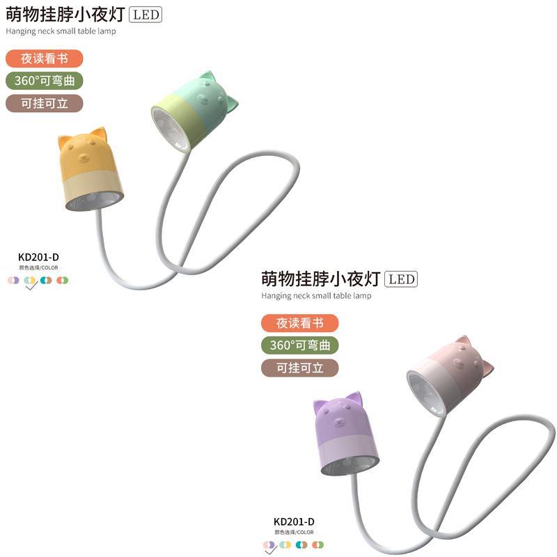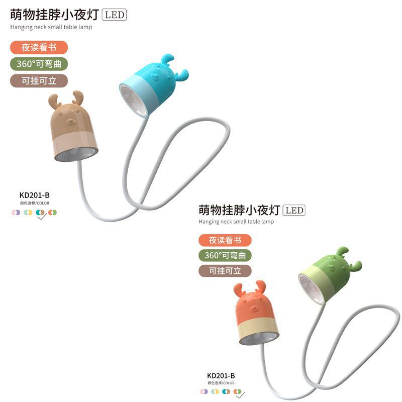 萌趣卡通挂脖小夜灯 懒人挂脖360°随意弯曲 LED办公学生桌面户外