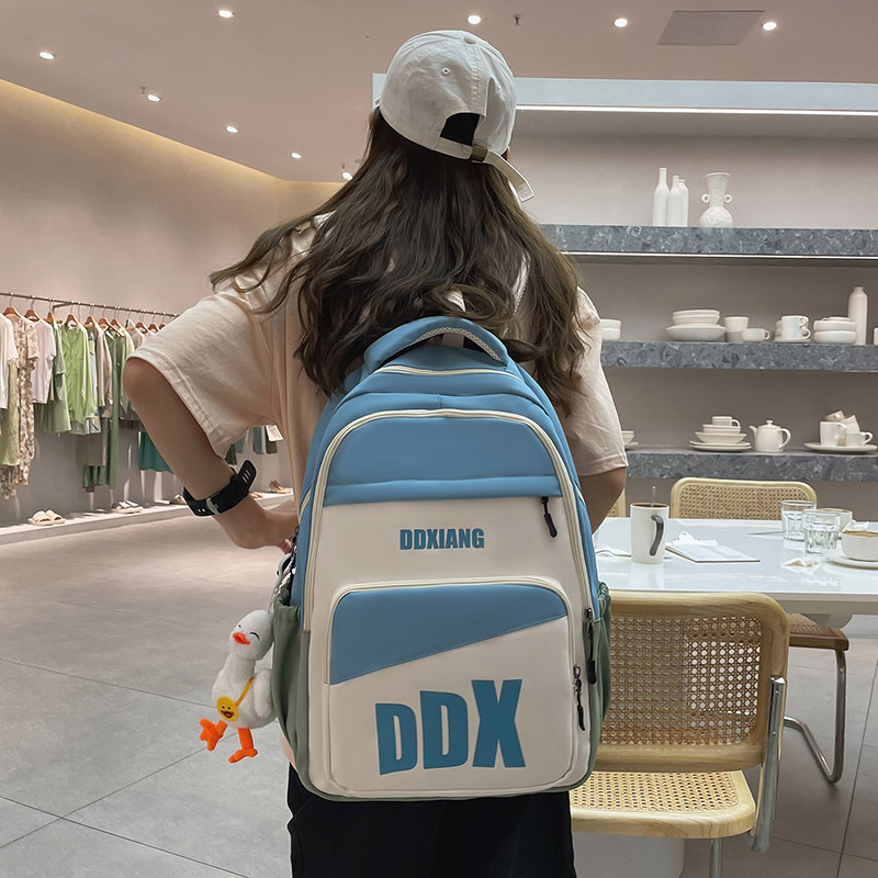 新款双肩背包女牛津布小清新可爱印花学院风初中生书包